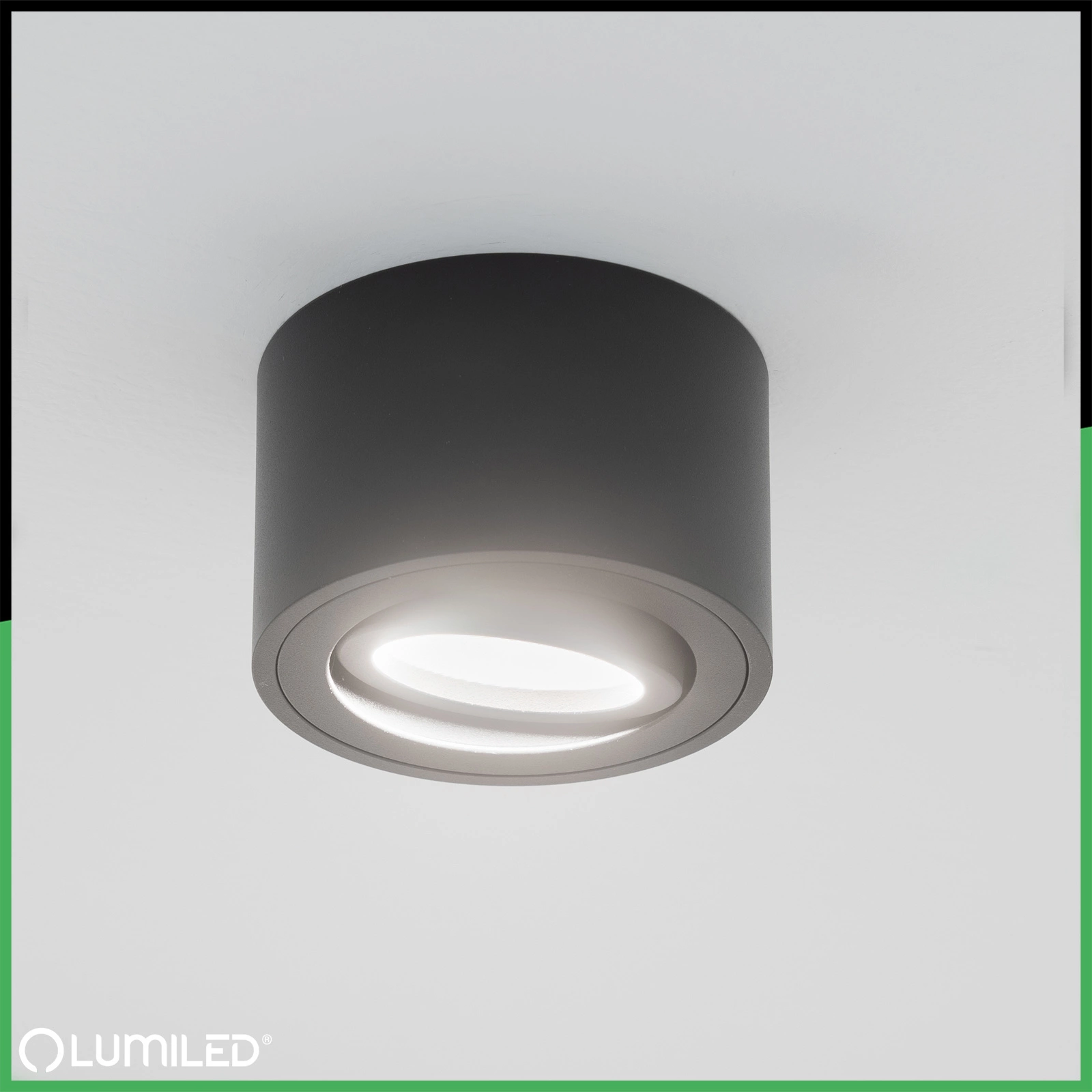 Kulaté, pohyblivé, přisazené svítidlo v černé barvě, série AMAT S , výška 50 mm , od LUMILED. Jedná se o moderní světelný zdroj. Halogenové svítidlo namontované na centrálním místě bude ozdobou lahodící oku a bude také dokonalým doplňkem moderních nebo minimalistických interiérů, dodá jim kouzlo a změní jejich vzhled.