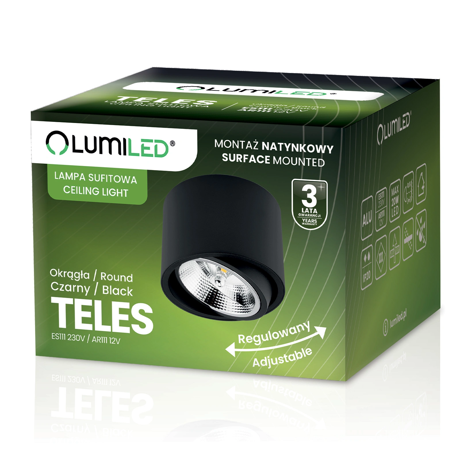 Přisazené svítidlo z řady TELES renomované a v osvětlovacím průmyslu uznávané značky Lumiled s paticí GU10. Svítidlo se skvěle hodí do každé domácnosti, obchodu, hotelu nebo restaurace jako akcentační nebo dekorativní osvětlení.