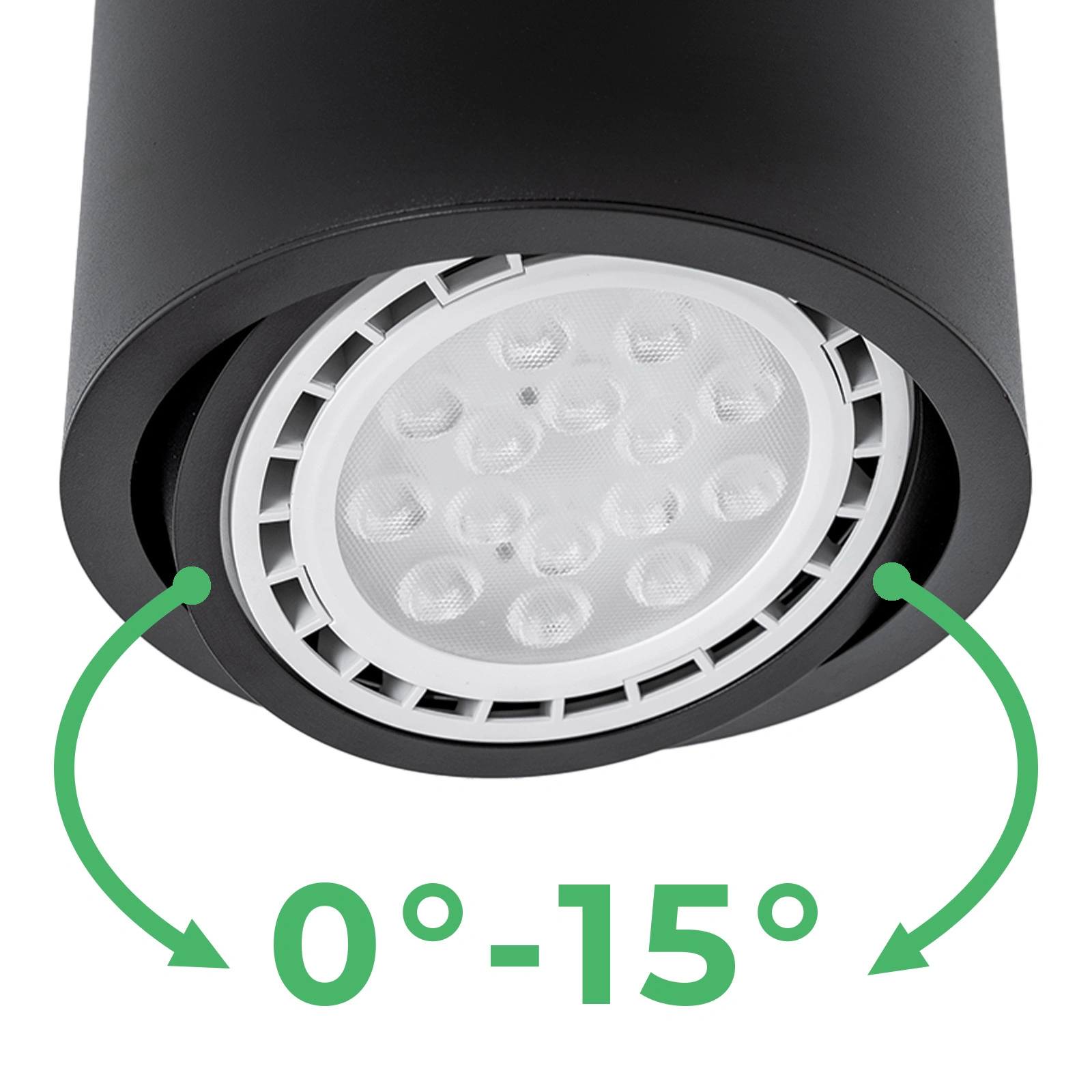 Další výhodou je, že prezentované svítidlo řady TELES je vybaveno pohyblivým vnitřním kroužkem , díky kterému můžeme snadno měnit úhel dopadu světla v rozsahu od 0° do 15°.