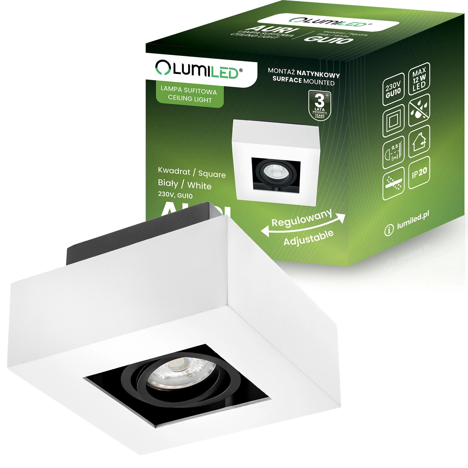 Přisazené svítidlo z řady AURI od renomované a v osvětlovacím průmyslu uznávané značky Lumiled s paticí GU10. Svítidlo se skvěle hodí do každé domácnosti, obchodu, hotelu nebo restaurace jako akcentační nebo dekorativní osvětlení.