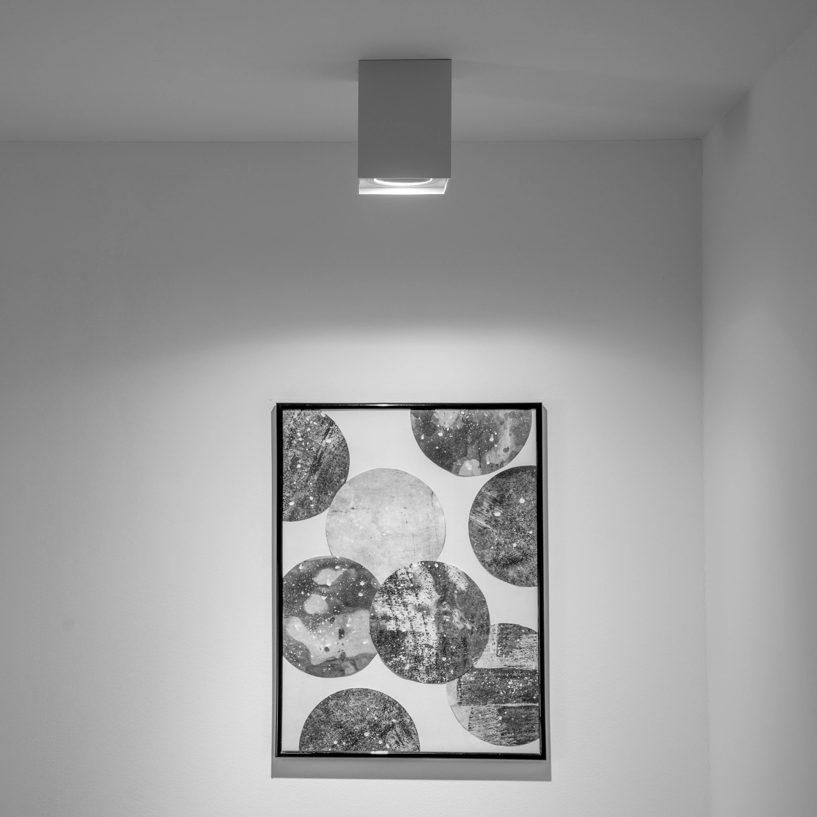 Čtvercové, pohyblivé, přisazené svítidlo v bílé barvě, série AMAT L , výška 115 mm , od LUMILED. Jedná se o moderní světelný zdroj. Halogenové svítidlo namontované na centrálním místě bude ozdobou lahodící oku a bude také dokonalým doplňkem moderních nebo minimalistických interiérů, dodá jim kouzlo a změní jejich vzhled.