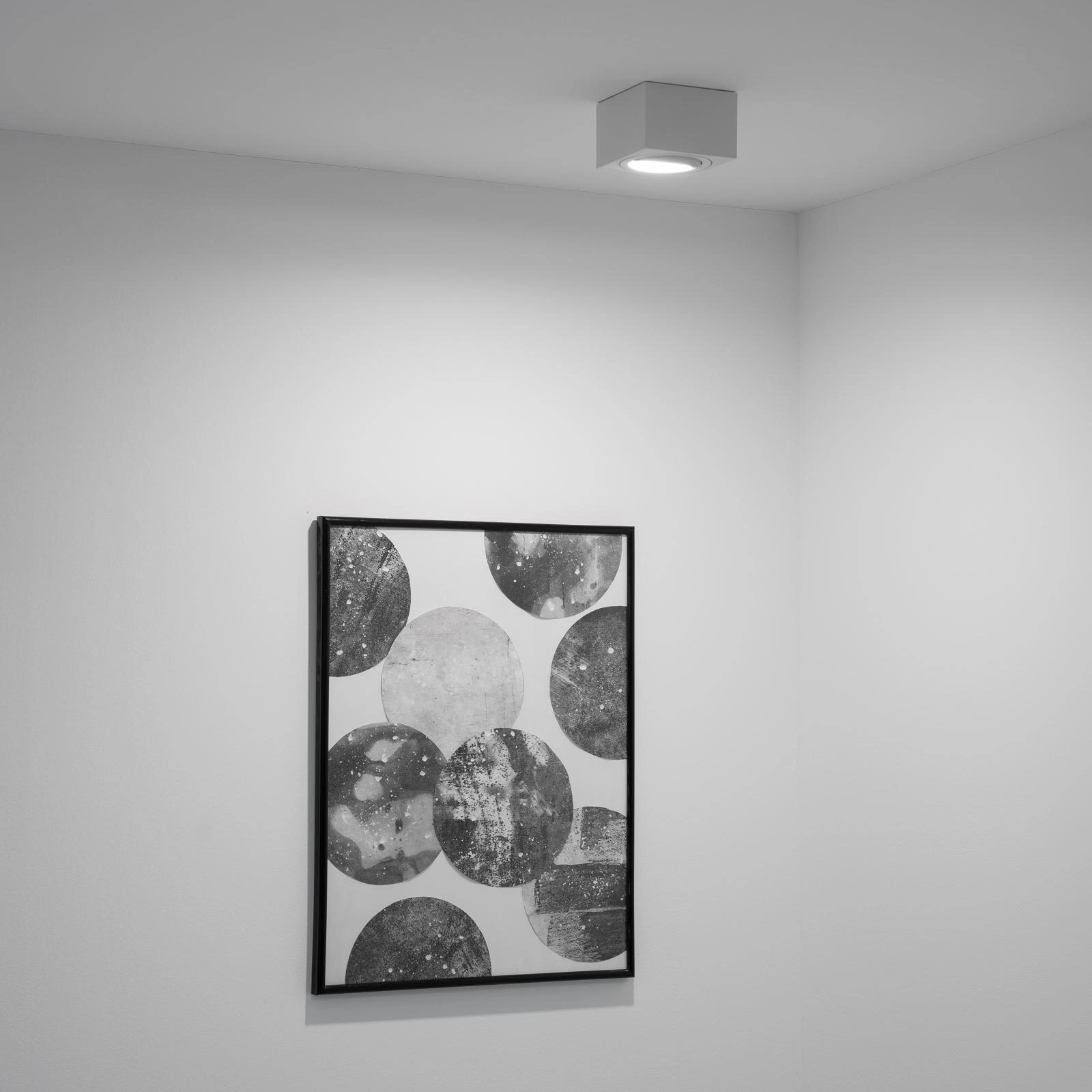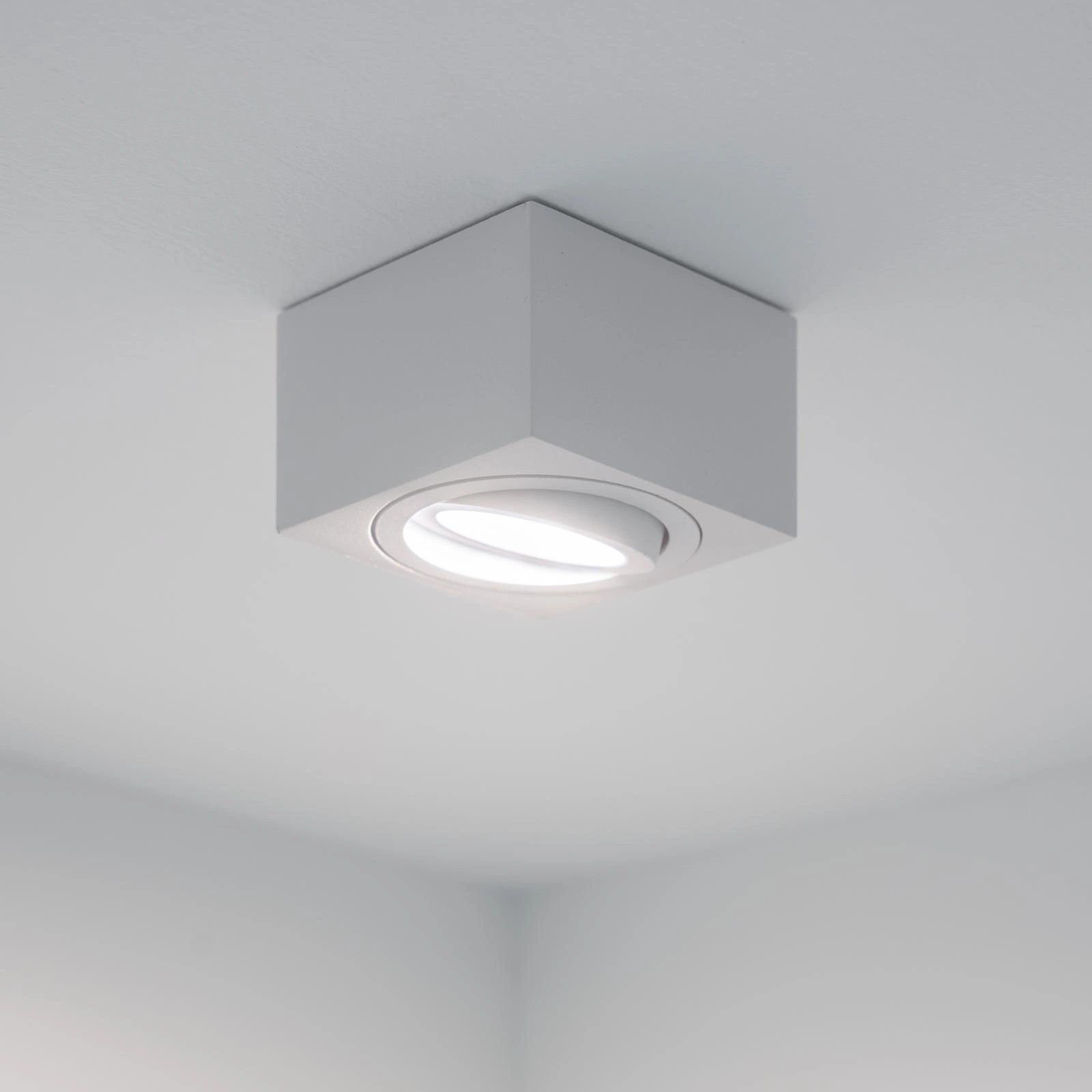 Čtvercové, pohyblivé, přisazené svítidlo v bílé barvě, série AMAT S , výška 50 mm , od LUMILED. Jedná se o moderní světelný zdroj. Halogenové svítidlo namontované na centrálním místě bude ozdobou lahodící oku a bude také dokonalým doplňkem moderních nebo minimalistických interiérů, dodá jim kouzlo a změní jejich vzhled.