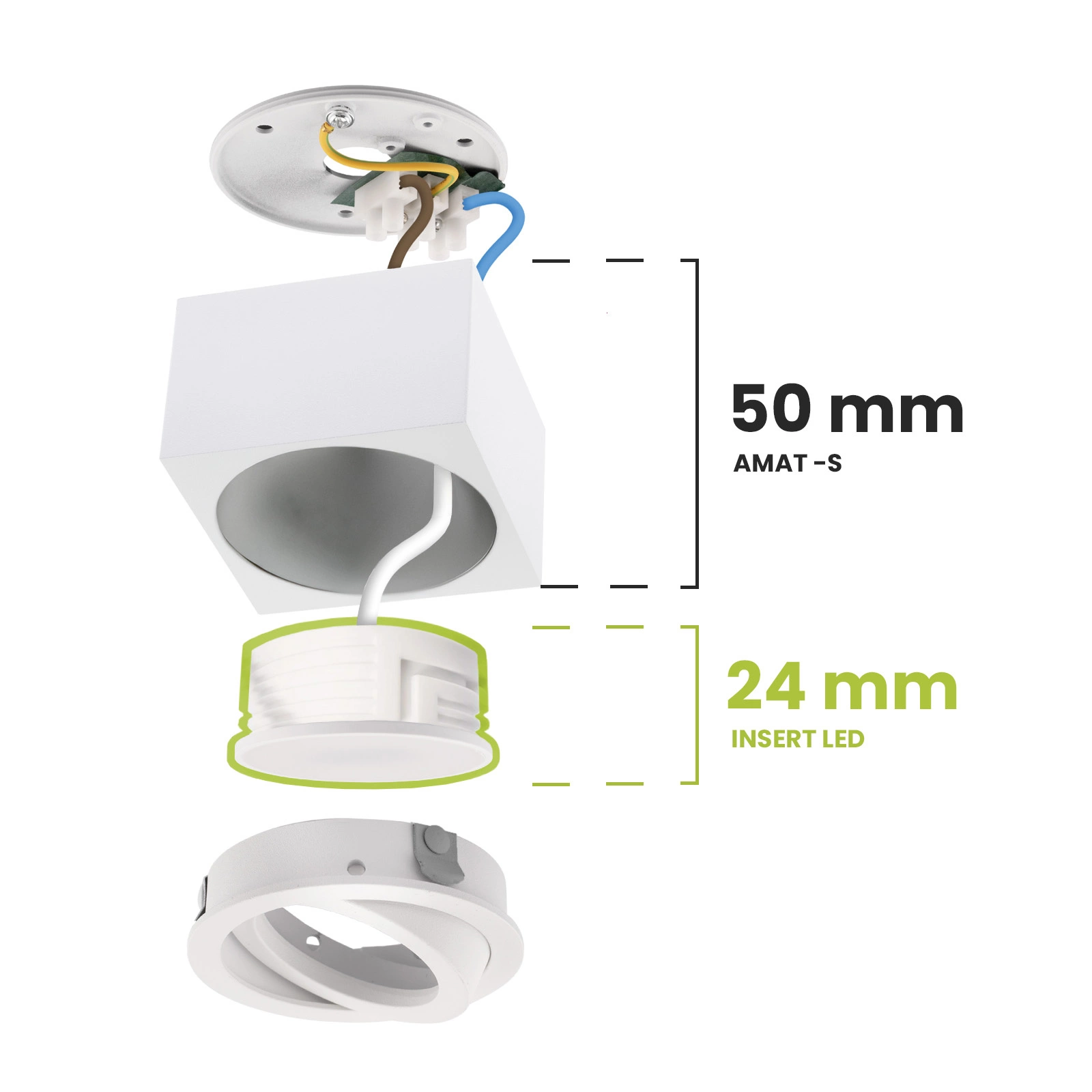 Povrchové Halogenové svítidlo GU10, SPOT TUBA 50mm Nastavitelná Čtvercová Bílá AMAT-S LUMILED