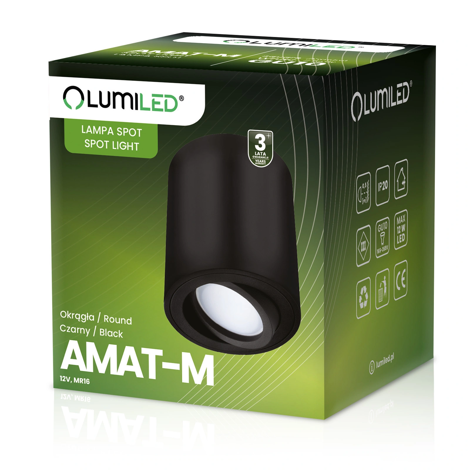 Kulaté, pohyblivé, přisazené svítidlo v černé barvě, řada AMAT M , výška 84 mm , od LUMILED. Jedná se o moderní světelný zdroj. Halogenové svítidlo namontované na centrálním místě bude ozdobou lahodící oku a bude také dokonalým doplňkem moderních nebo minimalistických interiérů, dodá jim kouzlo a změní jejich vzhled.