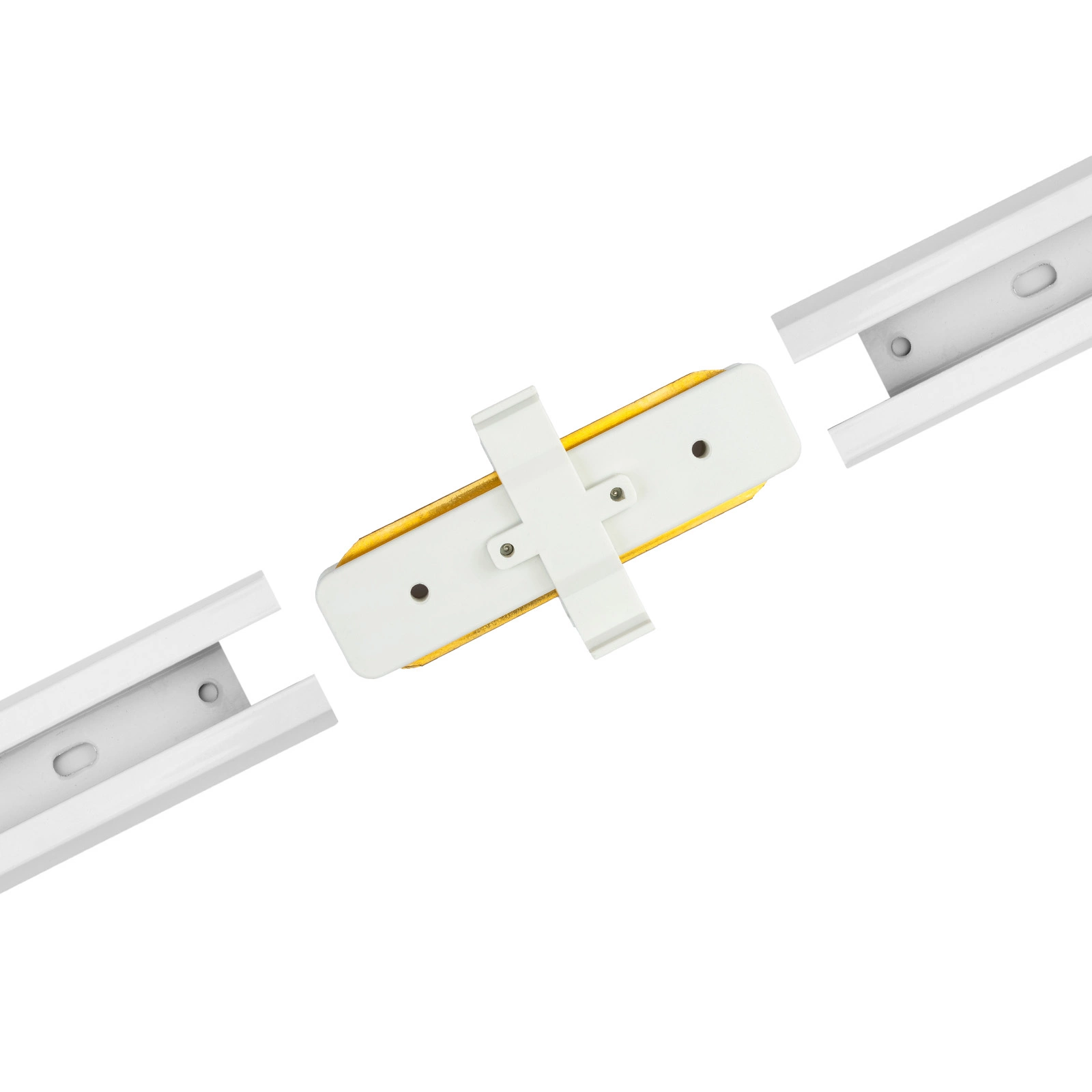 Rovný konektor v bílé barvě umožňující připojení dvou přípojnic. Pomocí konektorů můžete prodloužit kolejnice pro kolejové svítilny.