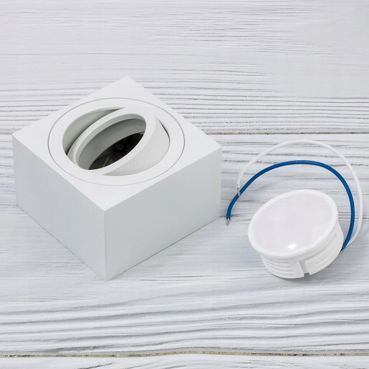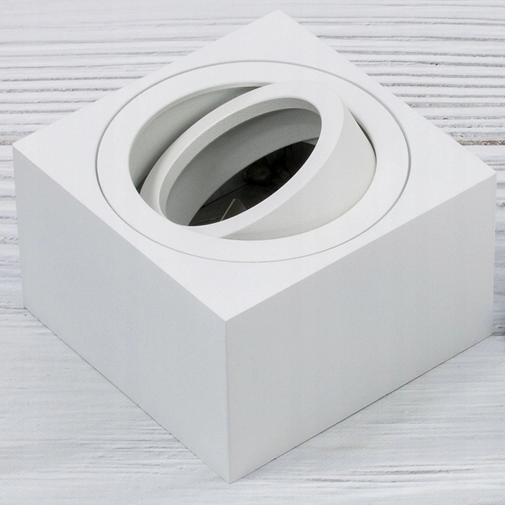 Čtvercové, pohyblivé, přisazené svítidlo, bílé, 50 mm vysoké. Jedná se o moderní světelný zdroj. Halogenové svítidlo namontované na centrálním místě bude ozdobou lahodící oku a bude také dokonalým doplňkem moderních nebo minimalistických interiérů, dodá kouzlo a změní jejich vzhled.