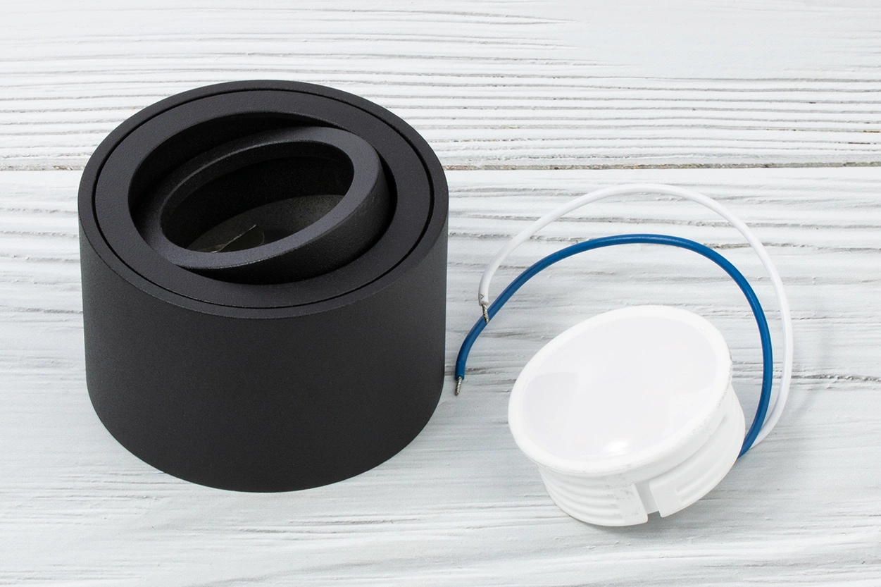 Povrchové Halogenové svítidlo, TUBA SPOT Nastavitelná Kulatá 50mm Černá AMAT-S + LED 5W 3000K LUMILED