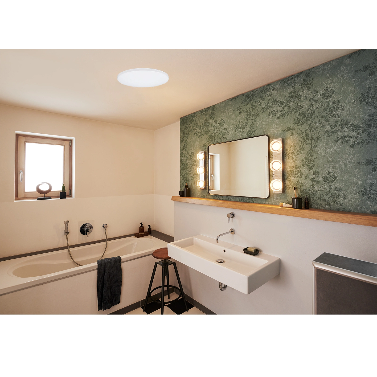 Prezentované stropní svítidlo s minimalistickým designem se oproti jiným svítidlům vyznačuje snadnou a rychlou instalací. Díky malému výstupku nad povrch stropu decentně ladí s celým uspořádáním místnosti. Další výhodou tohoto produktu je vysoká světelná účinnost 114 lm/W a dlouhá životnost, až 25 000 hodin.