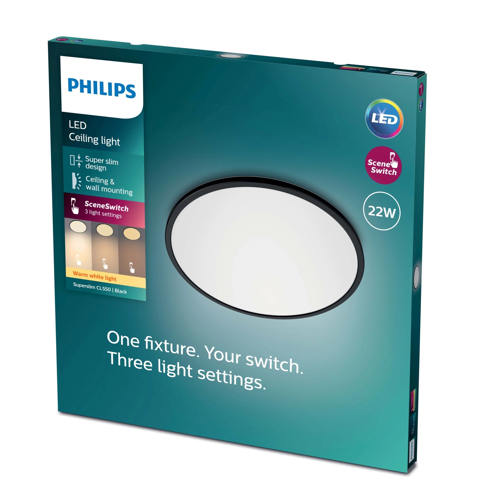 Vytvořte správnou náladu změnou jasu světla. Se stropními svítidly Philips SceneSwitch můžete pro každou příležitost nastavit jednu ze tří úrovní jasu. Výrobek nevyžaduje stmívač ani žádnou dodatečnou instalaci – vše, co potřebujete, je stávající vypínač světla.