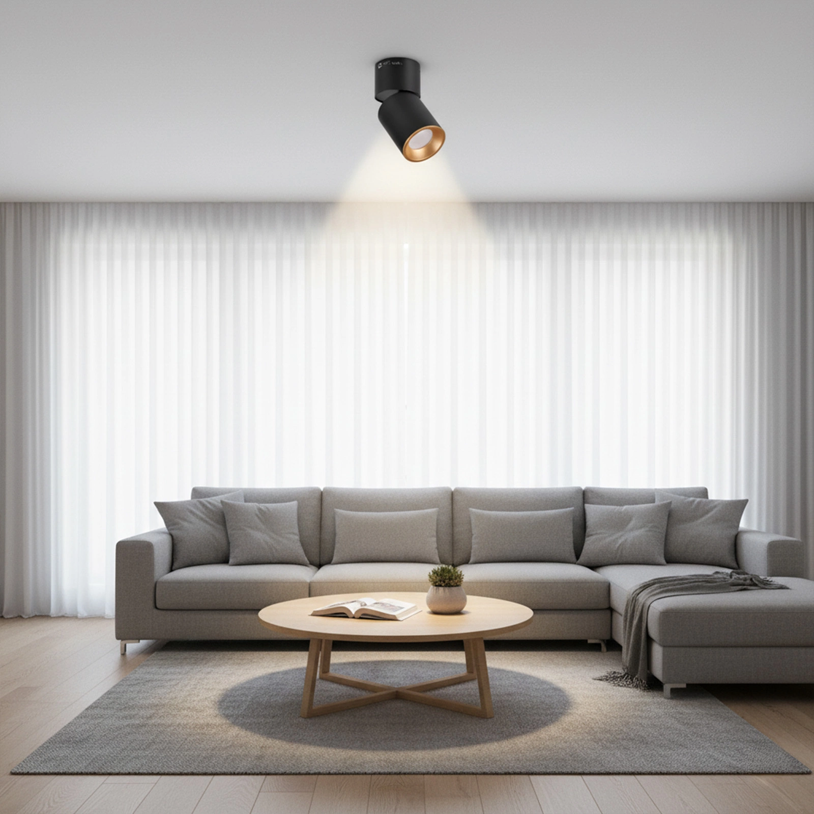 Přisazené svítidlo SPOT, očko GU10, pohyblivý kloub, černá a zlatá