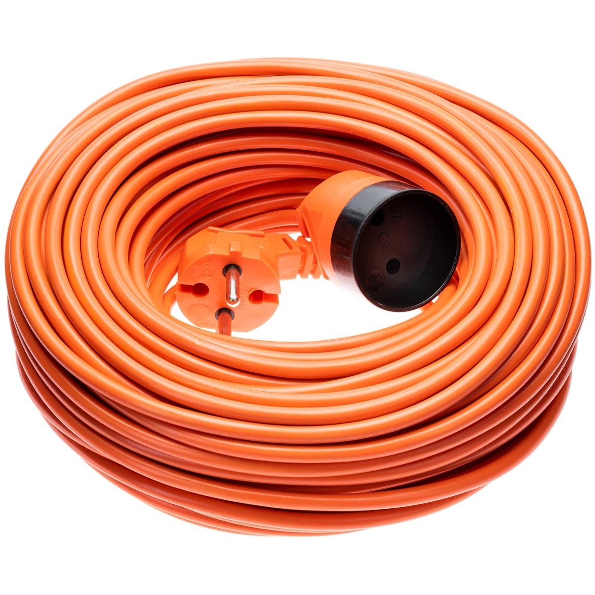 Elektrický prodlužovací kabel o délce 30m z jedna zásuvka s průřezem vodiče 2x1 mm (neuzemněná) je vhodná pro použití na zahradě k připojení elektrických spotřebičů i v dílně. Díky materiálu PVC je kabel ohebný a snadno se zatahuje a jeho intenzivní oranžová barva velmi dobře vynikne například na tmavě šedé podlaze dílny nebo na trávě, takže je snadno rozpoznatelný.