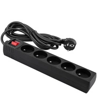 Zástrčka prodlužovacího napájecího kabelu - 5x zásuvka s uzemněním a vypínačem Napájecí proužek 5m 3x1.5mm 16A černá