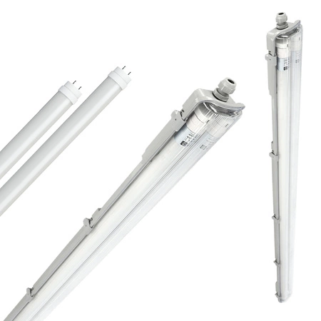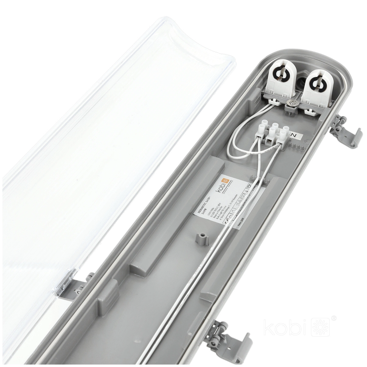 Rozsviťte své prostory spolehlivou sadou hermetických lamp Kobi! Naše nabídka zahrnuje mimořádně účinnou hermetickou řadu svítidel, která jsou vybavena dvěma 36 W a 120 cm dlouhými LED zářivkami T8. Zářivky vyzařují jasné světlo se světelným tokem 4320 lm a světelnou účinností 120 lm/W, což je ideální pro venkovní i vnitřní použití. Díky neutrální barevné teplotě 4000 K umožňuje sada pohodlné osvětlení s neutrální bílou barvou světla.