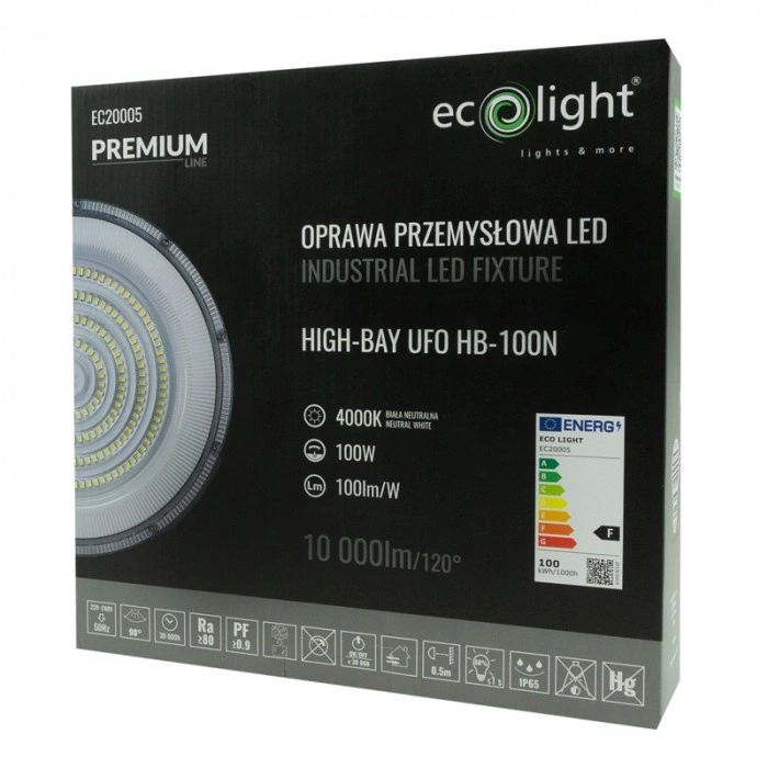 Průmyslová lampa High Bay UFO LED 100W 10000lm IP65 4000K ECOBAY0005