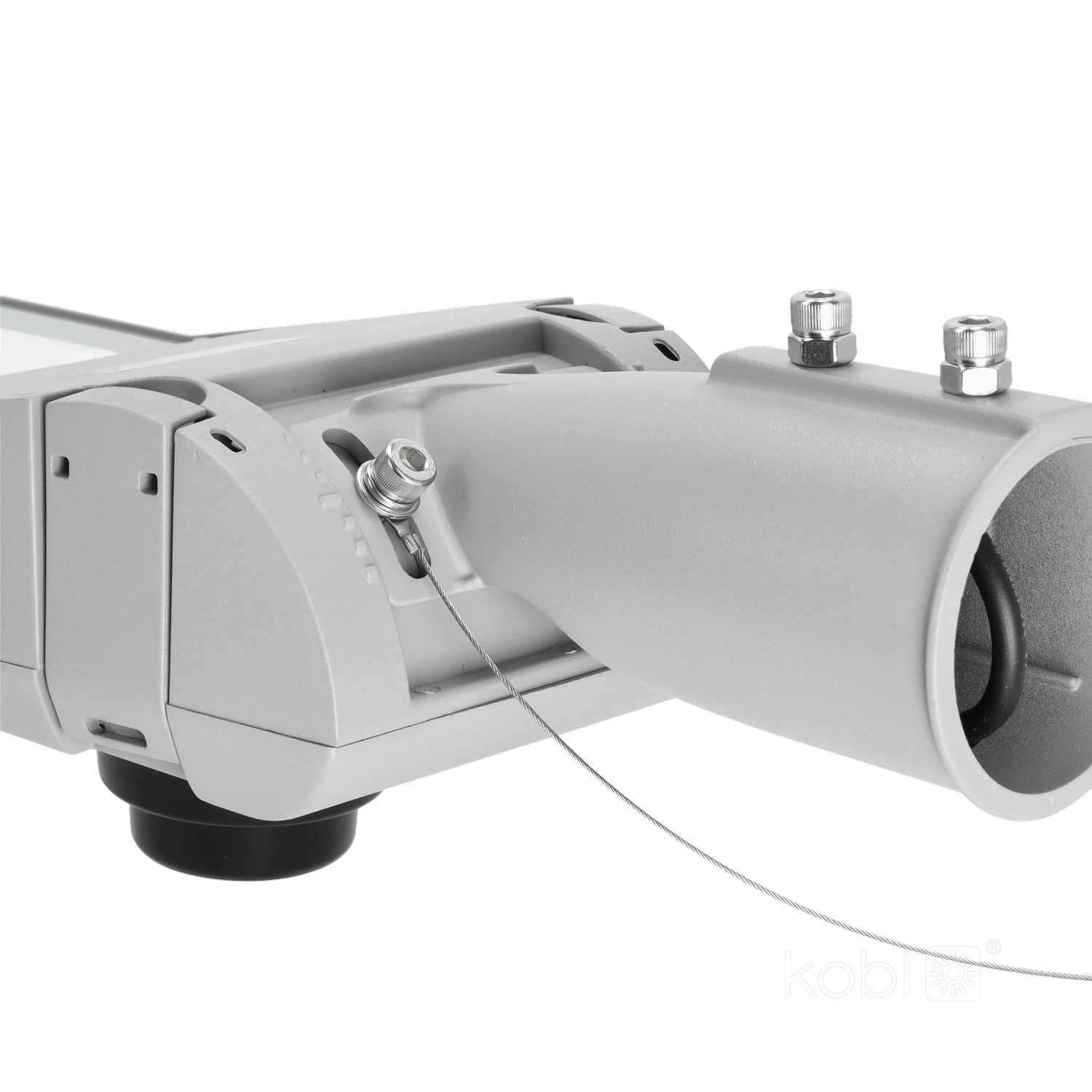 Díky robustní konstrukci v šedé barvě, stupni krytí IP66 a odolnosti proti nárazu IK09 je svítidlo ideální pro použití v náročných povětrnostních podmínkách. Montáž na stožár, není třeba vyměňovat světelný zdroj díky integrované LED, napájení ze sítě 230 V, třída ochrany II. Díky všestrannému designu a vynikající funkčnosti je silniční svítidlo Kobi ideální volbou pro zahrady i terasy.