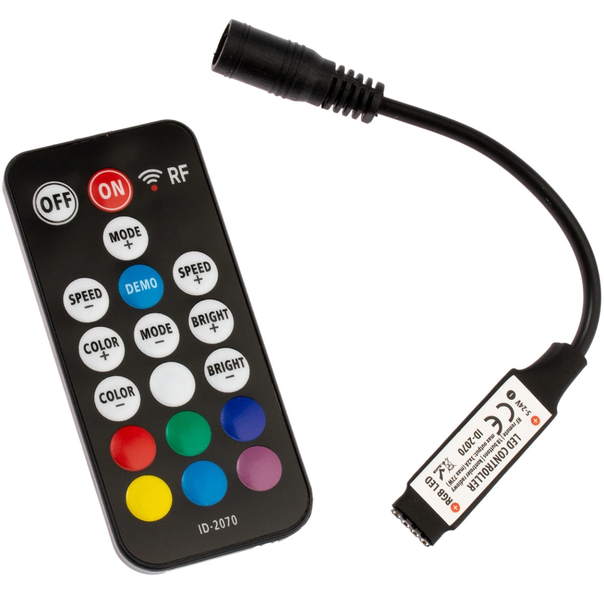 72W RGB LED rádiový ovladač s RF dálkovým ovládáním - Výrobek je určen mimo jiné pro použití s LED pásky. Umožňuje ovládat zařízení k němu připojená pomocí RF dálkového ovladače (stmívání, změna barvy světla). Kromě toho má ovladač 22 dynamických režimů osvětlení.