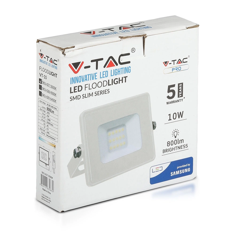 LED světlomet 10W 800lm 4000K IP65 Bílý čip Samsung VT-10-W V-TAC -