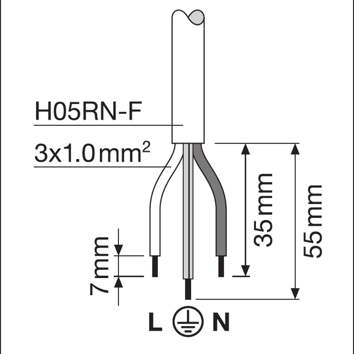 - Továrně instalovaný flexibilní kabel o délce 1 m (H05RN-F), 3 x 1,0 mm²