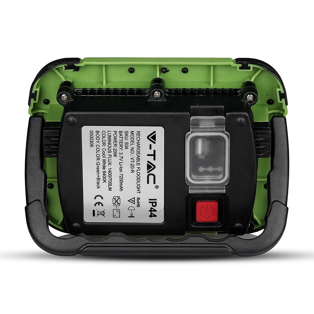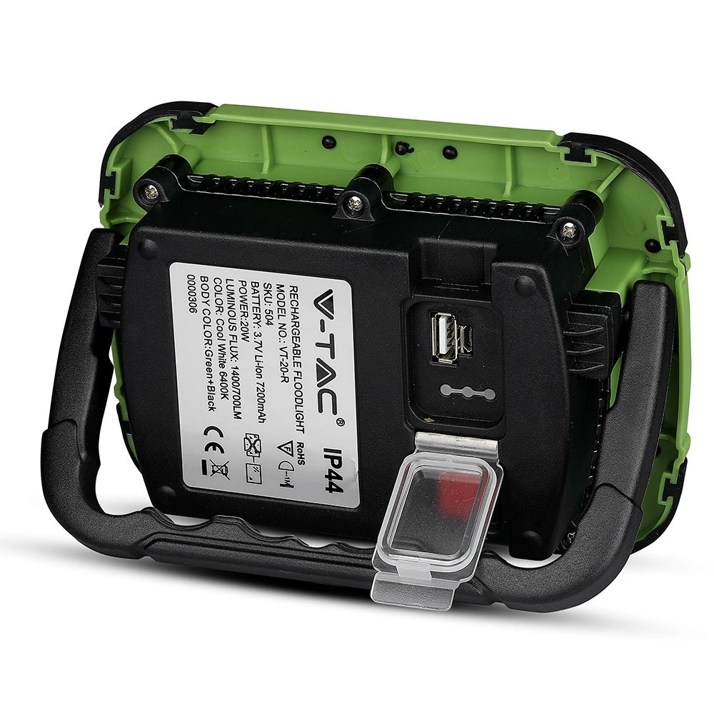 Reflektor LED 20W 1400lm 6400K IP44 zelená+černá USB Dobíjecí s funkcí SOS Samsung Chip VT-20-R V-TAC