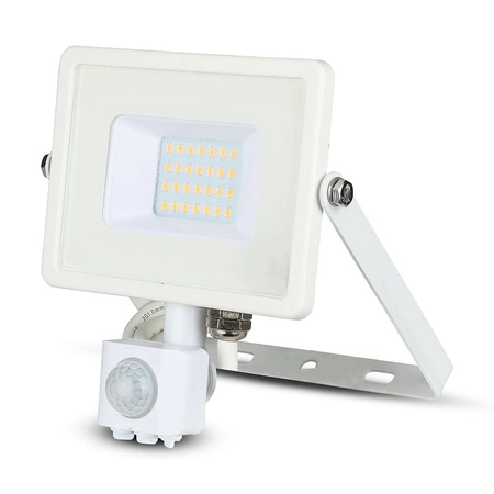 Reflektor LED 20W 1600lm 3000K IP65 Bílý s pohybovým senzorem a funkcí CUT-OFF Samsung Chip VT-20-SW V-TAC