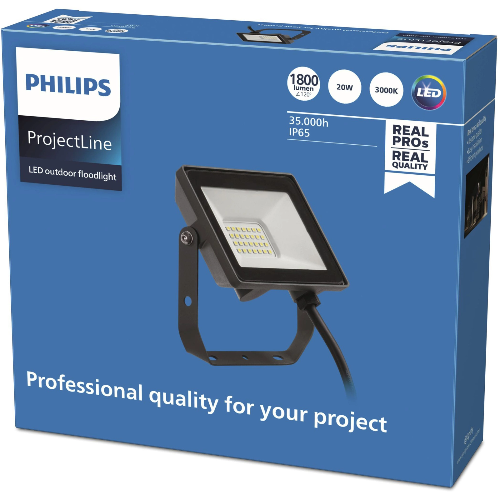 Rozsviťte svůj prostor moderním a stylovým světlometem LED ProjectLine od společnosti Philips. Tento 20W reflektor generuje působivý světelný tok 1800 lm, takže je ideální pro soukromé objekty i komerční využití. Díky teplé bílé barvě světla (3000 K) poskytuje příjemnou atmosféru a zároveň zvýrazňuje architekturu domu nebo zahrady. Vysoká světelná účinnost 90 lm/W v kombinaci s životností až 35 000 hodin zaručuje úspornost a dlouholeté používání.