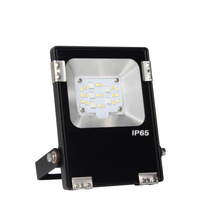 Moderní LED světlomet FUTT04 od Mi-Light je inteligentní LED světelný zdroj ve verzi RGB + CCT o výkonu 20W , který lze připojit přímo do sítě 86-265V AC . HALOGEN LED vyzařuje barevné RGB světlo a bílou barvu od 2700K do 6500K (teplé/studené) a světelný tok se pohybuje od 1500lm do 1800lm . Materiály použité na výrobu venkovního svítidla zaručují vysokou úroveň voděodolnosti IP65 . Světlomet Floodlight pracuje v 8zónovém standardu a navíc umožňuje plynulé nastavení jasu, barvy světla, sytosti a teploty barvy bílého světla. Světlomet lze ovládat pomocí dálkového ovladače nebo bezplatné mobilní aplikace, která vyžaduje použití iBOX Wi-Fi bridge . Příjemnou možností je funkce repeater , která nám při zachování 30m vzdálenosti od následných světlometů umožní získat neomezený dosah.