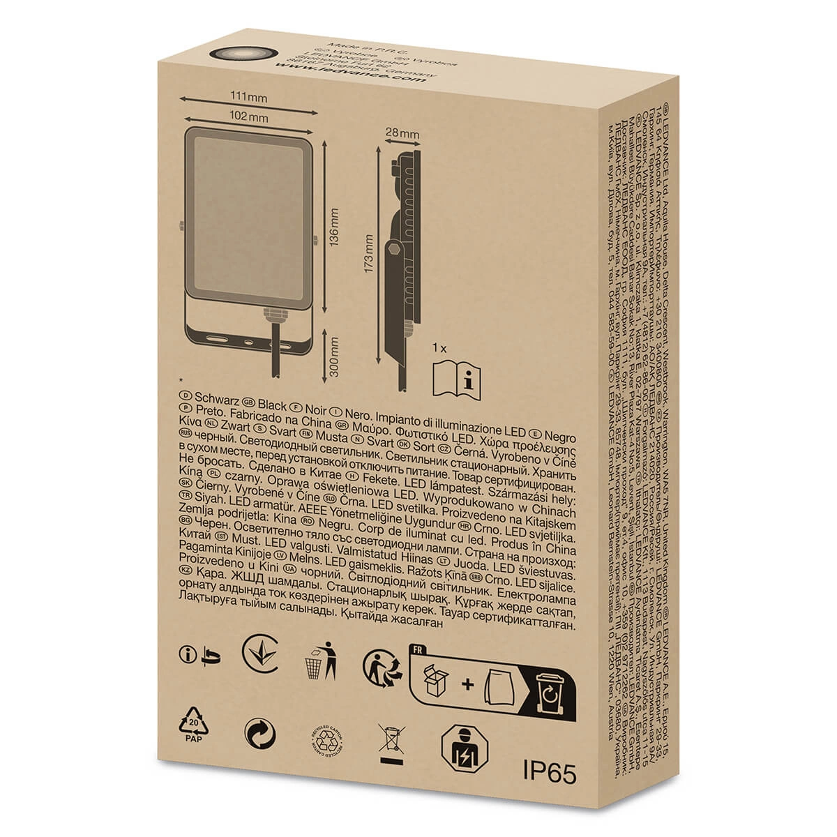 LED světlomet LEDVANCE je vybaven energeticky úsporným 20W LED světelným zdrojem , který vyzařuje neutrální světlo (4000K) . Bílý, saténově matný difuzor poskytuje rovnoměrné osvětlení bez oslnění a vysoký stupeň krytí IP65 chrání před vnikáním prachu a tryskající vodou . Halogen LED LEDVANCE je inovativní zařízení, které lze použít venku a nejlépe se hodí pro osvětlení garáží, fasád budov nebo příjezdových cest.