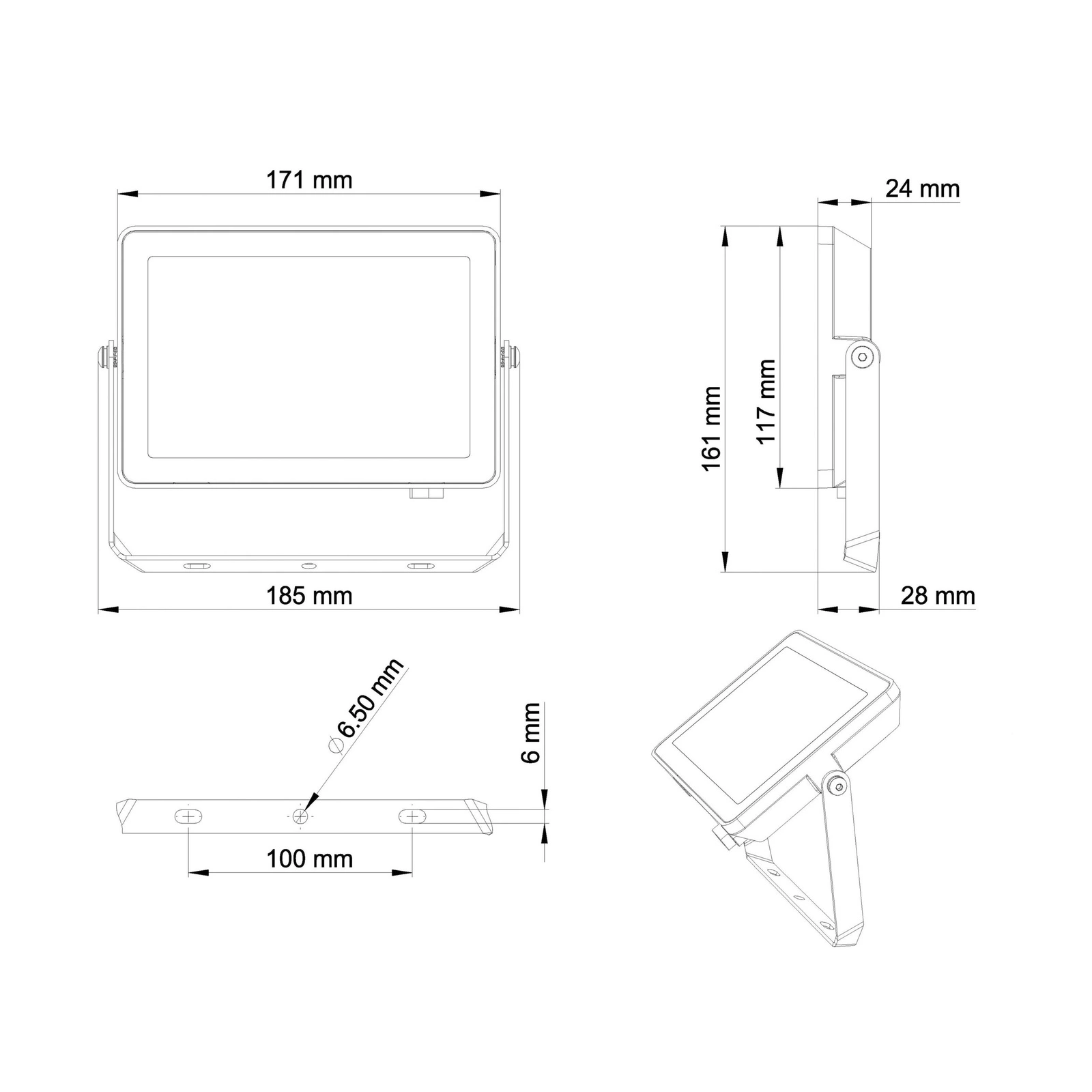 Tento obdélníkový reflektor je vynikající volbou pro povrchovou montáž. Díky stupni krytí IP65 a IK06 je plně chráněn proti prachu a vodě, což je ideální pro venkovní použití. Kromě toho se vyznačuje působivou životností 35 000 hodin a 15 000 vypínacími cykly. Díky nulovému obsahu rtuti splňuje ekologické požadavky, což potvrzuje certifikace CE. Na výrobek je poskytována dvouletá záruka, což podtrhuje jeho spolehlivost a odolnost. Vyberte si LED reflektor ProjectLine a užívejte si efektivní a energeticky úsporné osvětlení.