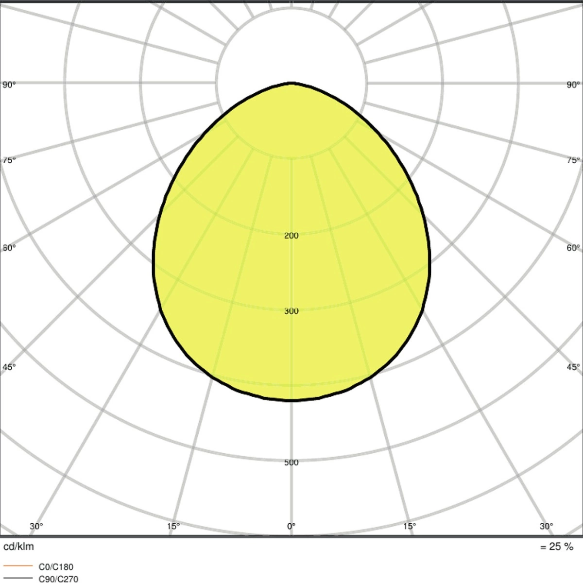 - Reflektor, symetrické rozložení světla s úhlem rozložení 100° x 100°