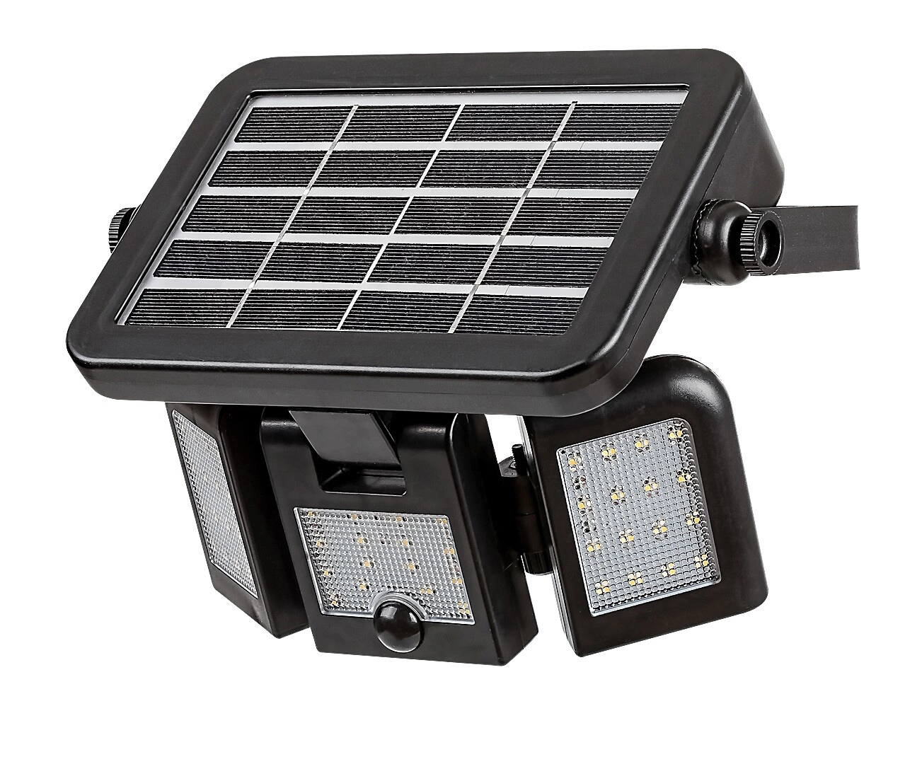 Reflektor LED solární zahradní lampa LUHULL 9.6W 4000K IP44 pohyblivá se senzorem pohybu černá RABALUX