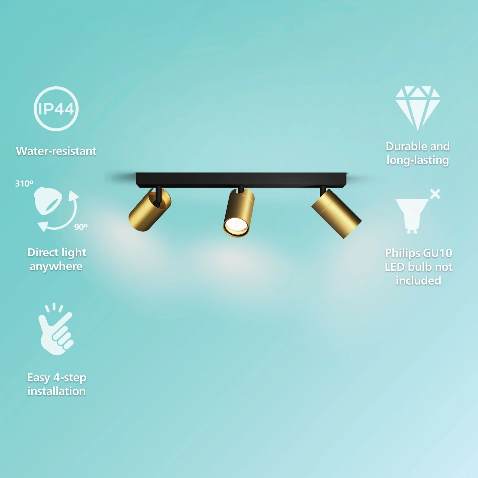 Představujeme vám elegantní stropní svítidlo Philips Kosipo, které dokonale zapadne do moderního interiéru. Toto jedinečné stropní svítidlo je vybaveno 3 reflektory, z nichž každý má samostatný světelný zdroj typu GU10, což vám umožní optimálně nasměrovat světelný paprsek podle vašich individuálních potřeb. Je vyrobeno v kombinaci mědi a černé barvy, takže dokonale podtrhne styl a estetiku místnosti a dodá jí eleganci a sofistikovanost. Jeho modernost jde ruku v ruce s funkčností, takže je ideálním kouskem do obývacího pokoje, jídelny i obývacího pokoje. Kromě atraktivního designu se lampa Kosipo vyznačuje vysokým krytím IP44, takže je odolná vůči vlhkosti a skvěle se hodí do prostor vystavených působení vody, jako jsou koupelny a kuchyně. Elektrické napájení pokrývá rozsah napětí 220-240 V, což zajišťuje stabilní a bezpečný provoz. Díky "stylu: moderní" a možnosti nastavit polohu každého reflektoru tento model nejen splní vaše potřeby v oblasti osvětlení, ale stane se také výrazným doplňkem vašeho interiéru. Dovolte lampě Kosipo, aby se stala praktickým i dekorativním prvkem vašeho domova.