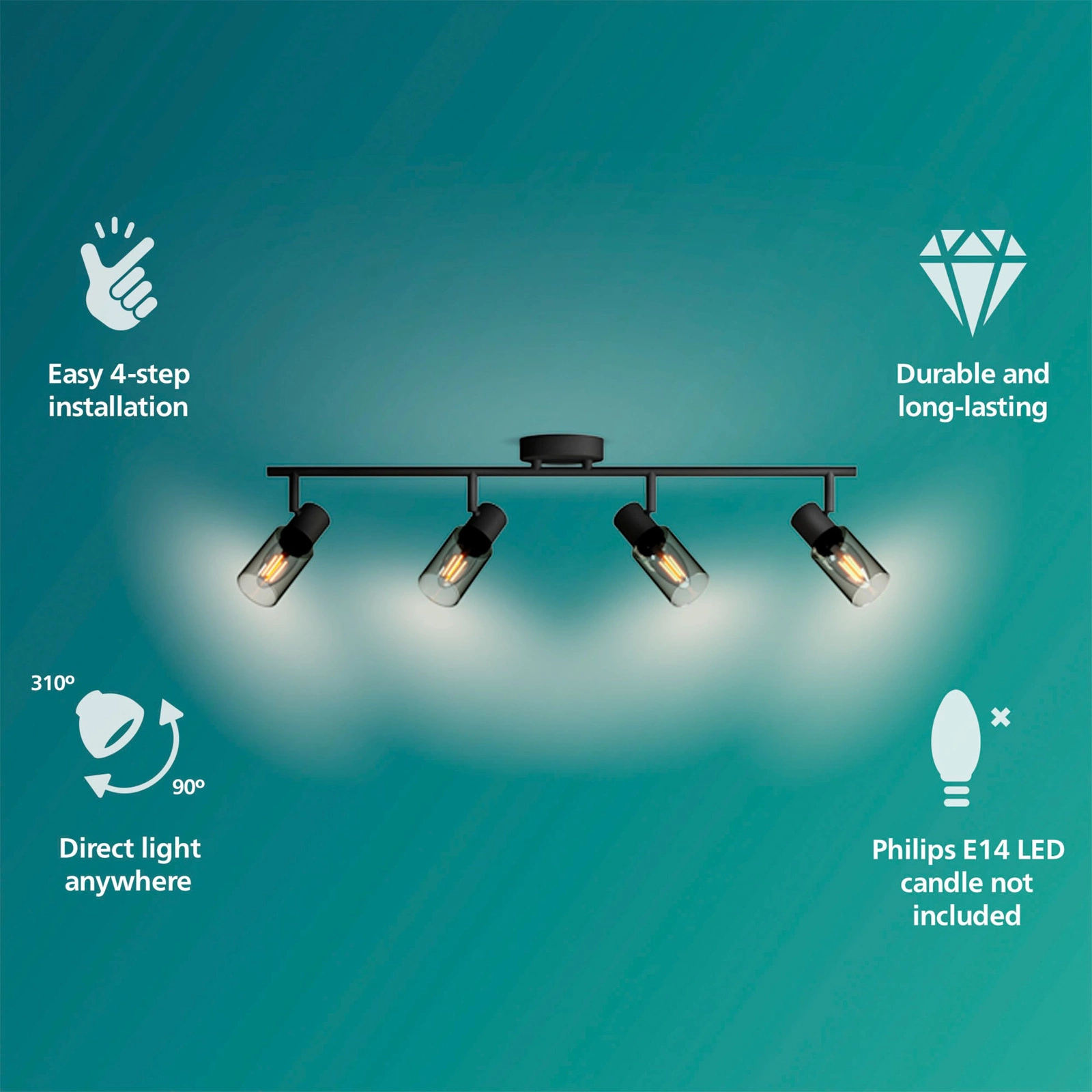 Nabízíme elegantní a moderní reflektorové stropní svítidlo Philips 4x E14 Black Palms, které dokonale zapadne do interiéru každého moderního domu. Tato lampa je ideální pro ty, kteří ocení funkčnost a styl. Díky čtyřem světelným zdrojům lampa rovnoměrně osvětluje místnost a zvýrazňuje její přednosti. Typ, barvu a počet bodových světel lze přizpůsobit, což z něj činí mimořádně univerzální výrobek. Lampa Palms používá 4x šroubení E14 a je kompatibilní s napětím 220-240 V pro širokou kompatibilitu a výkon. Díky modernímu stylu, v němž byla navržena, vypadá lampa skvěle v obývacím pokoji, kuchyni nebo ložnici. Černé barevné provedení jí dodává na eleganci a to, že je vyrobena renomovanou značkou Philips, zaručuje spolehlivost a vysokou kvalitu výrobku. Investujte do osvětlení, které v sobě spojuje estetiku a funkčnost.