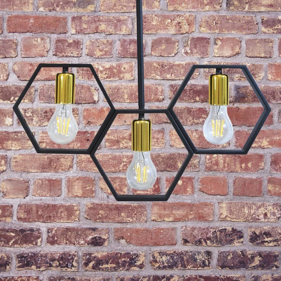 Stropní závěsné svítidlo Retro loft 3x E27 černá + zlatá Honey Polux
