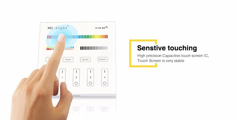 Vysílací zařízení z řady LED ovladačů Mi-light se vyznačují tím, že je lze přiřadit k více zařízením. Pokročilá elektronická technologie implementovaná uvnitř krytu funguje jako přijímací zařízení, které se připojuje k našemu LED ovladači. Jedna zóna dálkového ovládání může být spojena s mnoha zařízeními, včetně: LED žárovky, downlighty nebo jiné přijímače, které dokážou spolupracovat s daným modelem. Řada Mi-Light byla navržena tak, aby se mnoho zařízení vzájemně nerušilo a samotné připojení bylo snadné a příjemné na ovládání.