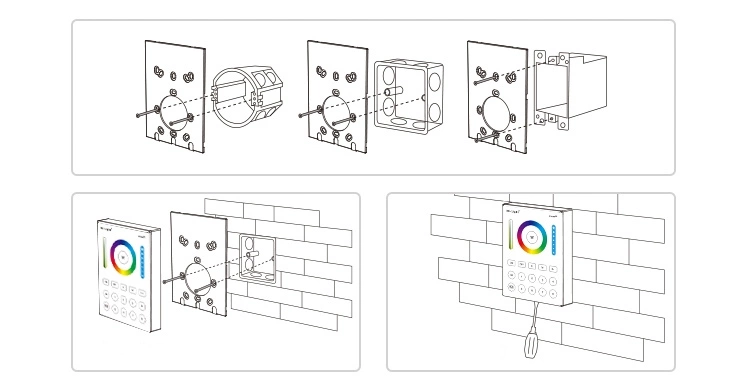 Přisazené nástěnné LED panely z řady Mi-Light se liší svou strukturou v závislosti na prezentovaném modelu. Mezi nimi je však mnoho souvislých prvků, jako jsou: dotyková ovládací pole, kterým jsou přiřazeny různé funkce. Tlačítko odpovědné za zapnutí/vypnutí LED osvětlení je umístěno v samém středu panelu, aby byl přístup k němu snadný a intuitivní. Pro změnu jasu a teploty barev (v případě CCT ovladačů) slouží dotykový posuvník, také u vícebarevného ovladače RGB, RGB+W nebo RGB+CCT zůstává princip fungování barevných změn nezměněn. Ovladač se ovládá pomocí číselníku s dotykovými posuvníky uspořádanými v jednotlivých barvách. Zbývající tlačítka slouží specifickým funkcím odpovídajícím danému modelu.