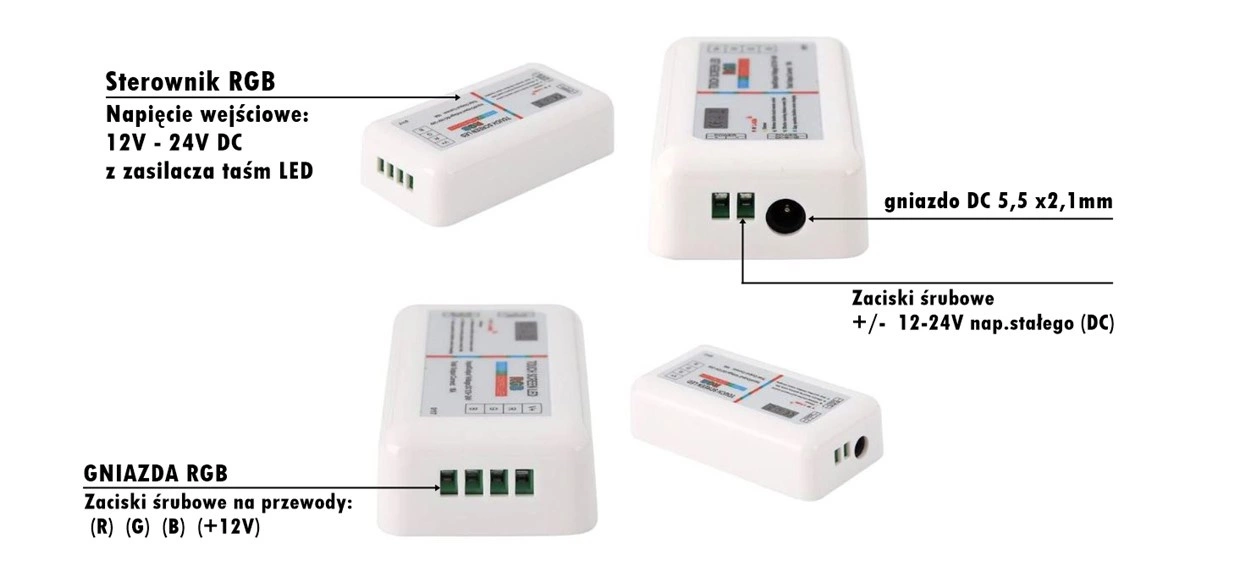 Sada RGB ovladače je jednozónový kompletní produkt, který umožňuje bezdrátové ovládání vícebarevného RGB osvětlení. Ideální pro ovládání LED pásků. Tato sada vám umožňuje získat jakoukoli barvu dostupnou v paletě barev RGB. Zařízení se vzájemně propojují pomocí rádia (signál 2,4 GHz). Celá sestava se skládá z rádiového dálkového ovládání a jednoho přijímače (přijímacího zařízení). Výrobek je nabízen za přijatelnou cenu a je ihned připraven k použití.