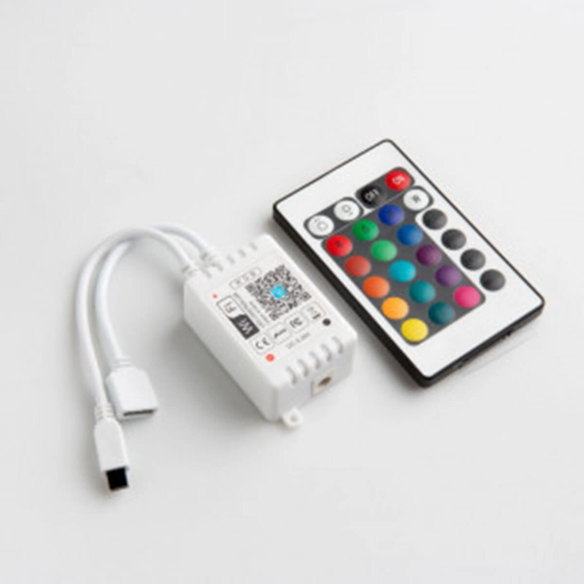 RGB LED ovladač je kompaktní zařízení, které slouží k ovládání vícebarevného LED osvětlení i jedné bílé barvy. Ovladač umožňuje ovládat osvětlení přes WiFi síť pomocí telefonu s nainstalovanou dedikovanou aplikací (Android, iOS). Je také možné jej ovládat dálkovým ovladačem, který je součástí sady. Aplikaci si můžeme snadno stáhnout z Google Play Store nebo APP Store nebo naskenovat QR kód na obalu/návodu.