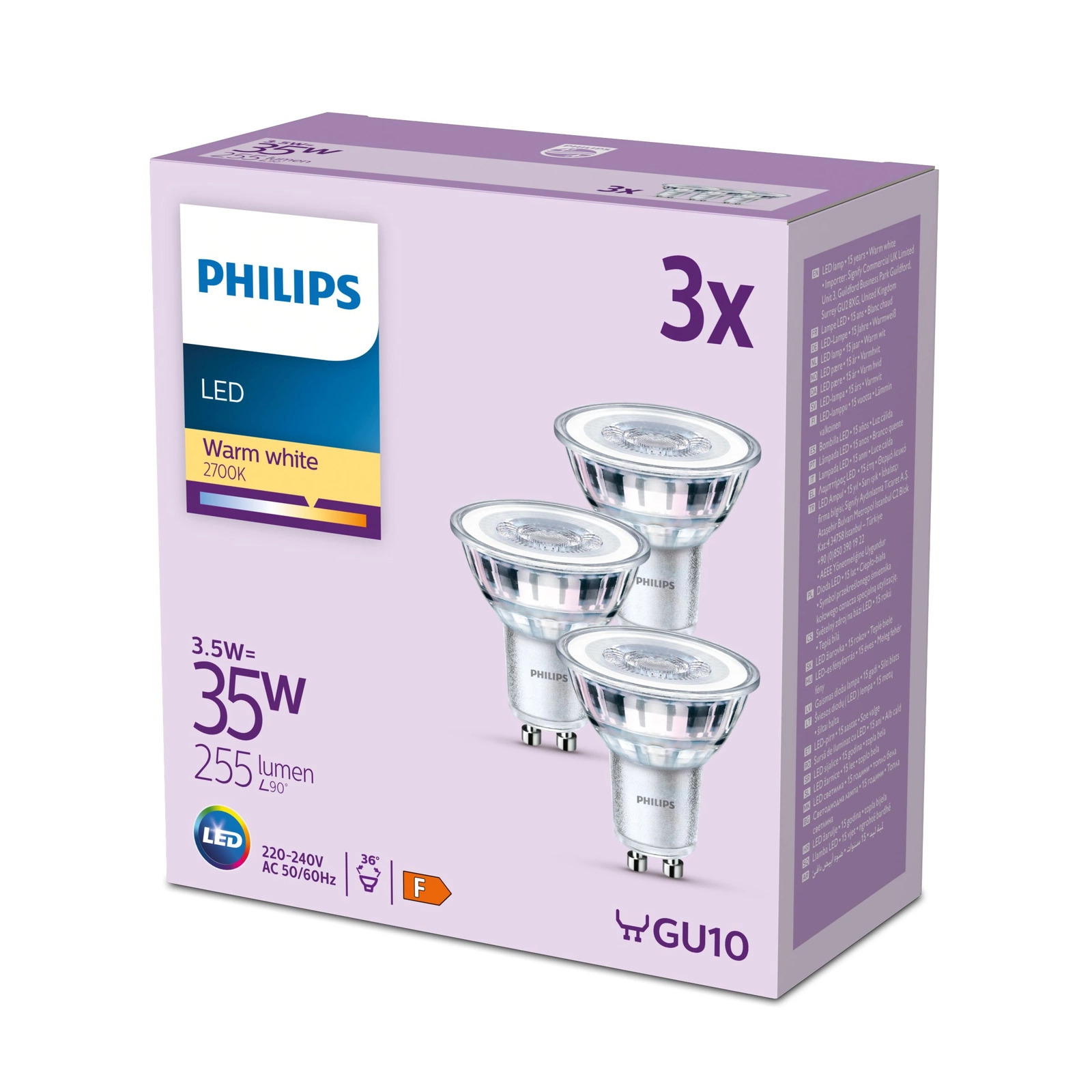 Sada 3x halogenové LED žárovky je energeticky úsporný světelný zdroj od renomované a uznávané značky PHILIPS v osvětlovacím průmyslu s paticí GU10 a výkonem 3,5W , ideální do každé domácnosti, obchodu, hotelu nebo restaurace jako akcentové nebo dekorativní osvětlení a může lze instalovat do všech tradičních svítidel vybavených základnou GU10.