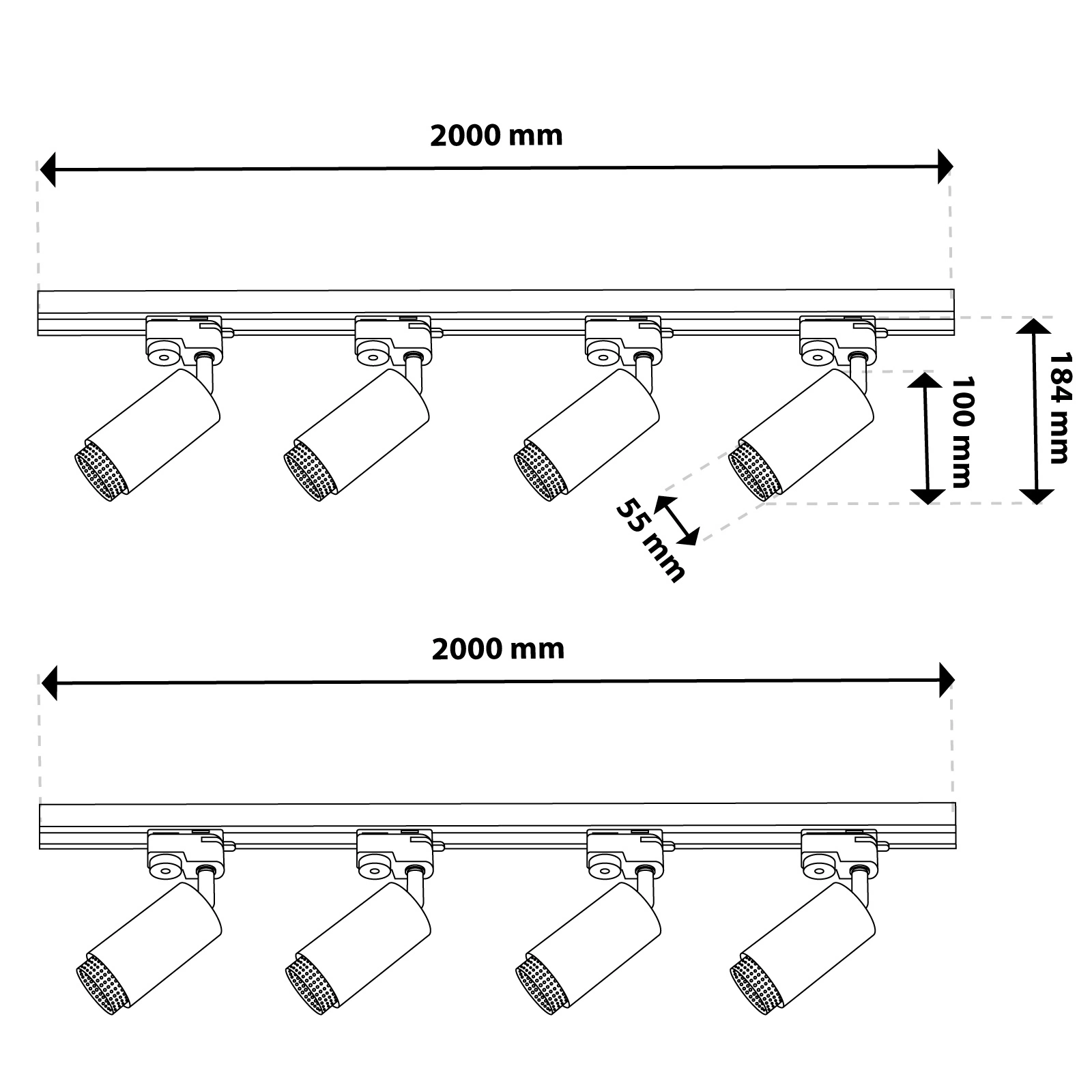 Sada 4m kolejnic + 8x stropní svítidlo GU10 s reflektorem LUMILED Track Lighting