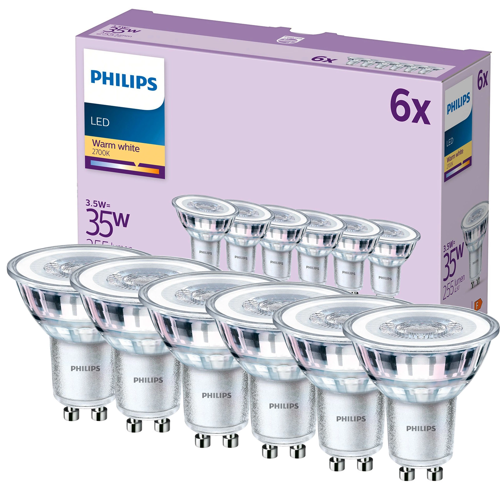 Sada 6x halogenové LED žárovky je energeticky úsporný světelný zdroj od renomované a uznávané značky PHILIPS v osvětlovacím průmyslu s paticí GU10 a výkonem 3,5W , ideální do každé domácnosti, obchodu, hotelu nebo restaurace jako akcentační nebo dekorativní osvětlení a může lze instalovat do všech tradičních svítidel vybavených základnou GU10.
