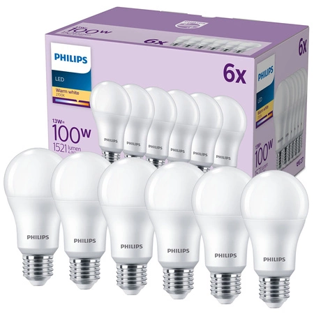 Sada 6x Philips LED žárovky poskytuje teplé světlo, mimořádnou odolnost a okamžité výrazné snížení spotřeby energie. S teplou teplotou barev připomínající barvu plamenů je perfektní volbou pro vytvoření útulné atmosféry.