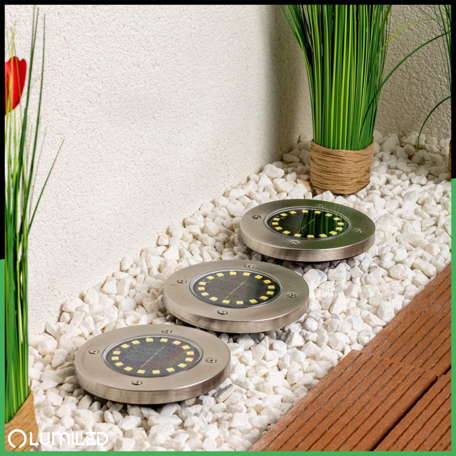 Sada 6x LED solárních zahradních svítidel HELIS Driven Ground Discs 4000K IP44 LUMILED