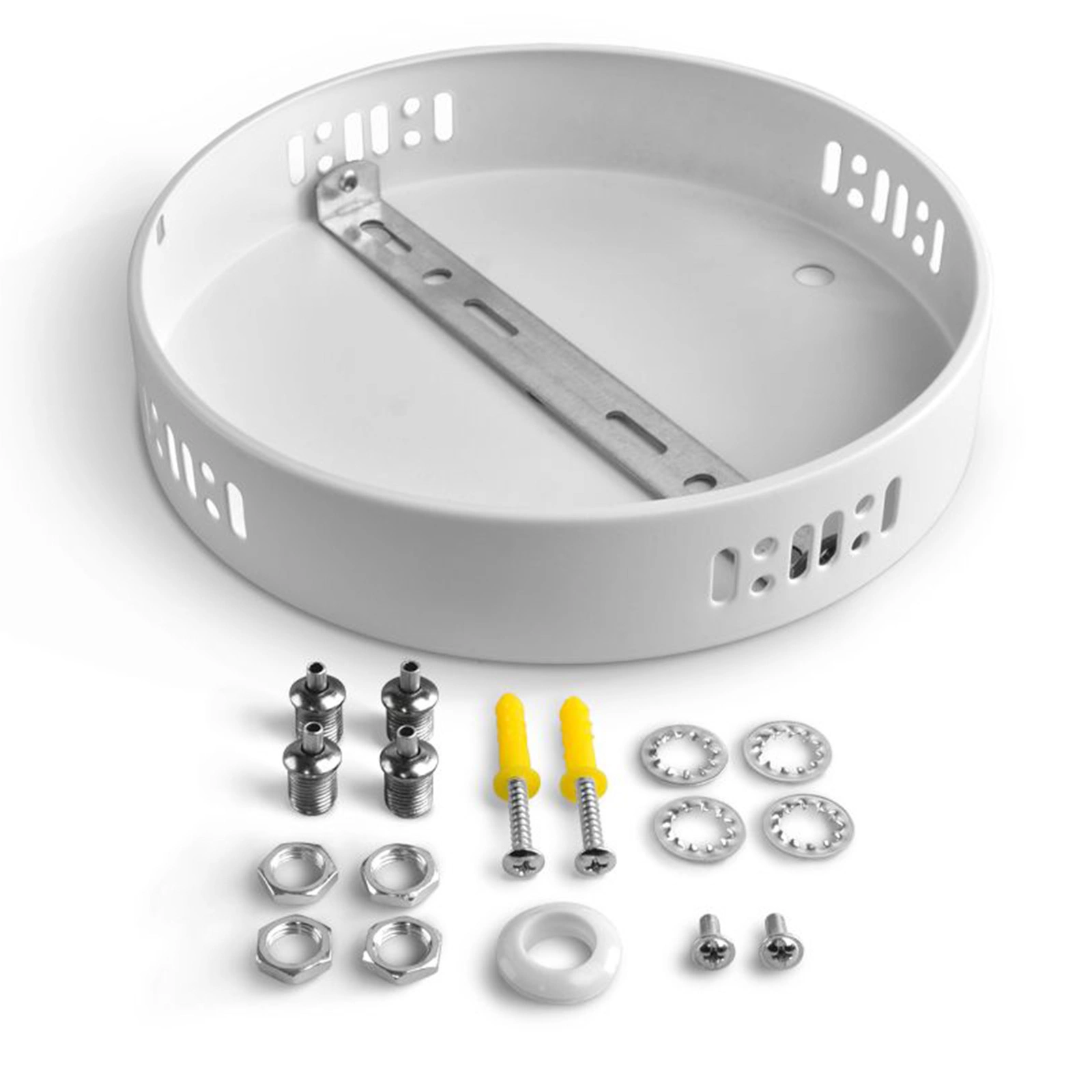 Tato sada je jedním z prvků sady pro závěsnou instalaci LED panelů a rámových LED panelů . Na jednom konci je připevněn panel a na druhém konci jsou 4 kabely (nejsou součástí dodávky) společně připojeny ke kruhové základně, která je zase zavěšena připevněna ke stropu.