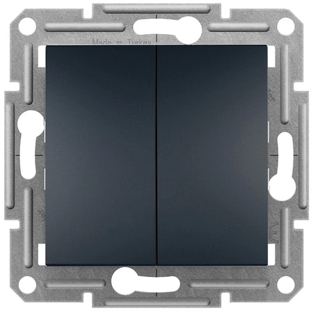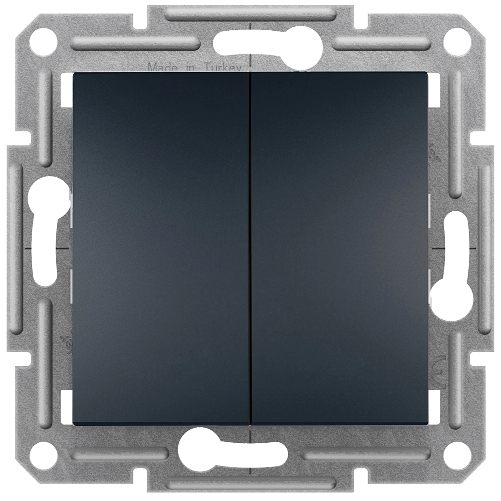 Standardní dvojitý schodišťový spínač ze série Asfora od Schneider Electric . Používá se v interiéru jako vypínač osvětlení. Pevně ​​přilne ke stěně pomocí rámečků, při ohnutí se vrátí do původního tvaru a chrání před nárazy.