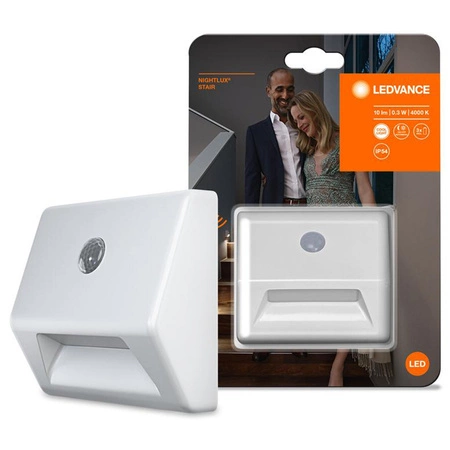 Schodišťové svítidlo Nightlux Ledvance LED je moderní řešení osvětlení s vysokou účinností a nízkou spotřebou energie. S příkonem 0,25 W a světelným tokem 10 lm poskytuje efektivní osvětlení schodiště a dokonale zapadne do každého interiéru. S neutrální barvou světla o barevné teplotě 4000 K a indexem podání barev Ra 80 nabízí optimální světelné podmínky.