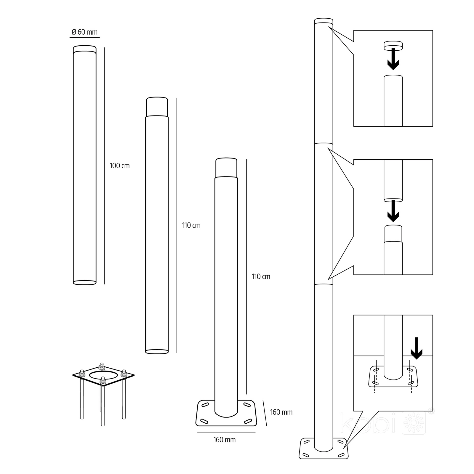 SG 3m Fi 60mm Black Kobi skládací venkovní osvětlovací stožár