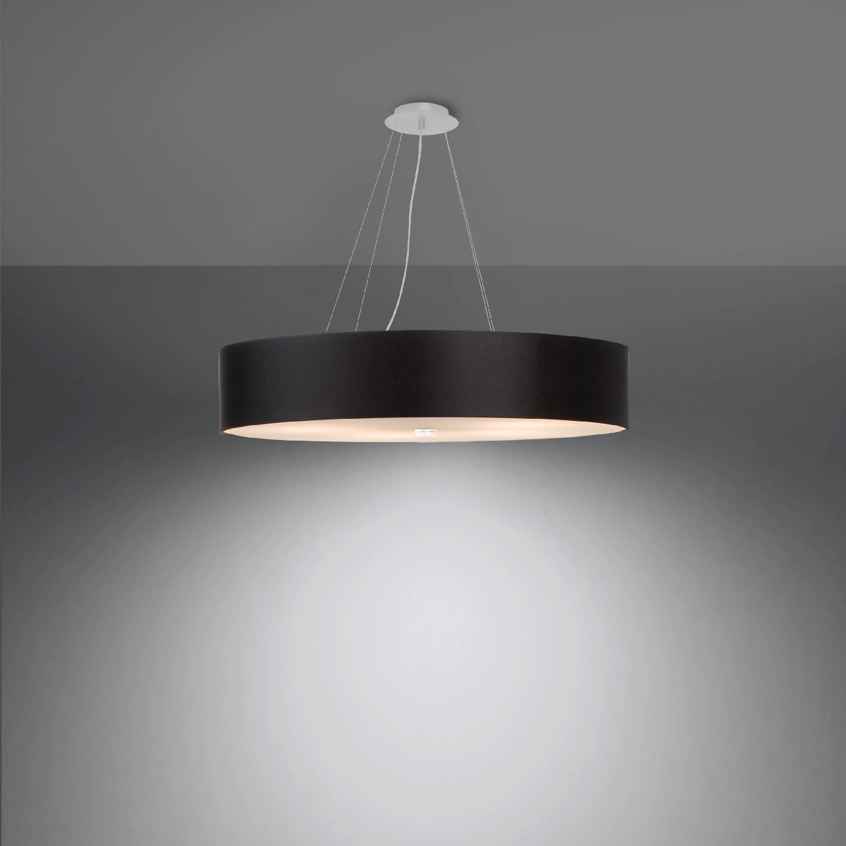 Závěsné stropní svítidlo Skala od společnosti Sollux v sobě spojuje eleganci a moderní design. Má geometrické, minimalistické tvary a černou povrchovou úpravu, která dodá interiérům sofistikovaný nádech. Tento model je vybaven šesti svítidly typu E27, díky čemuž je možné do něj umístit různé typy žárovek, což vám umožní přizpůsobit osvětlení z hlediska intenzity i barvy světla. Díky tomuto designu je ideální pro obytné i komerční prostory a vnáší do nich hřejivou a příjemnou atmosféru.