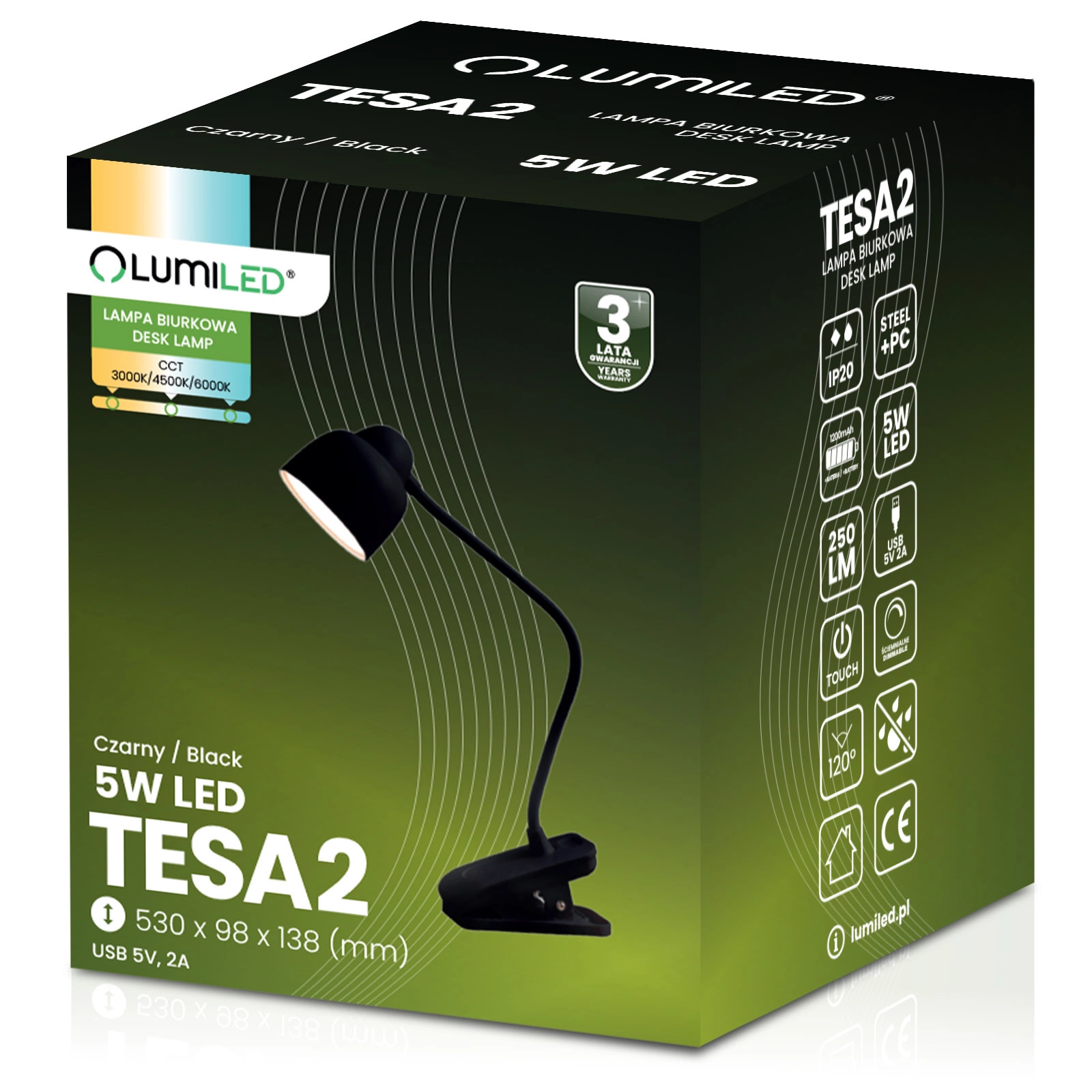 Školní stolní lampa LED 5W CCT TESA 2 Black LUMILED