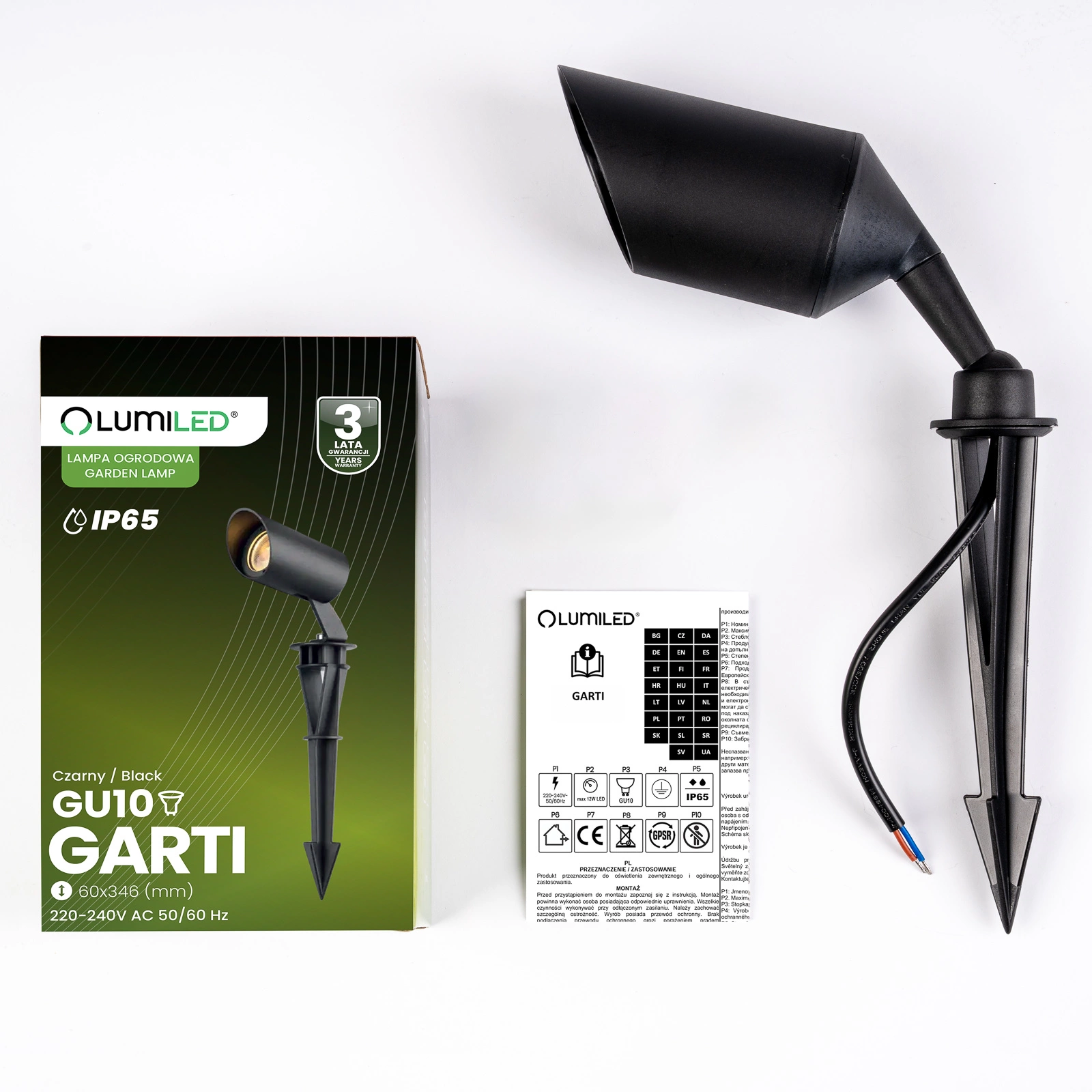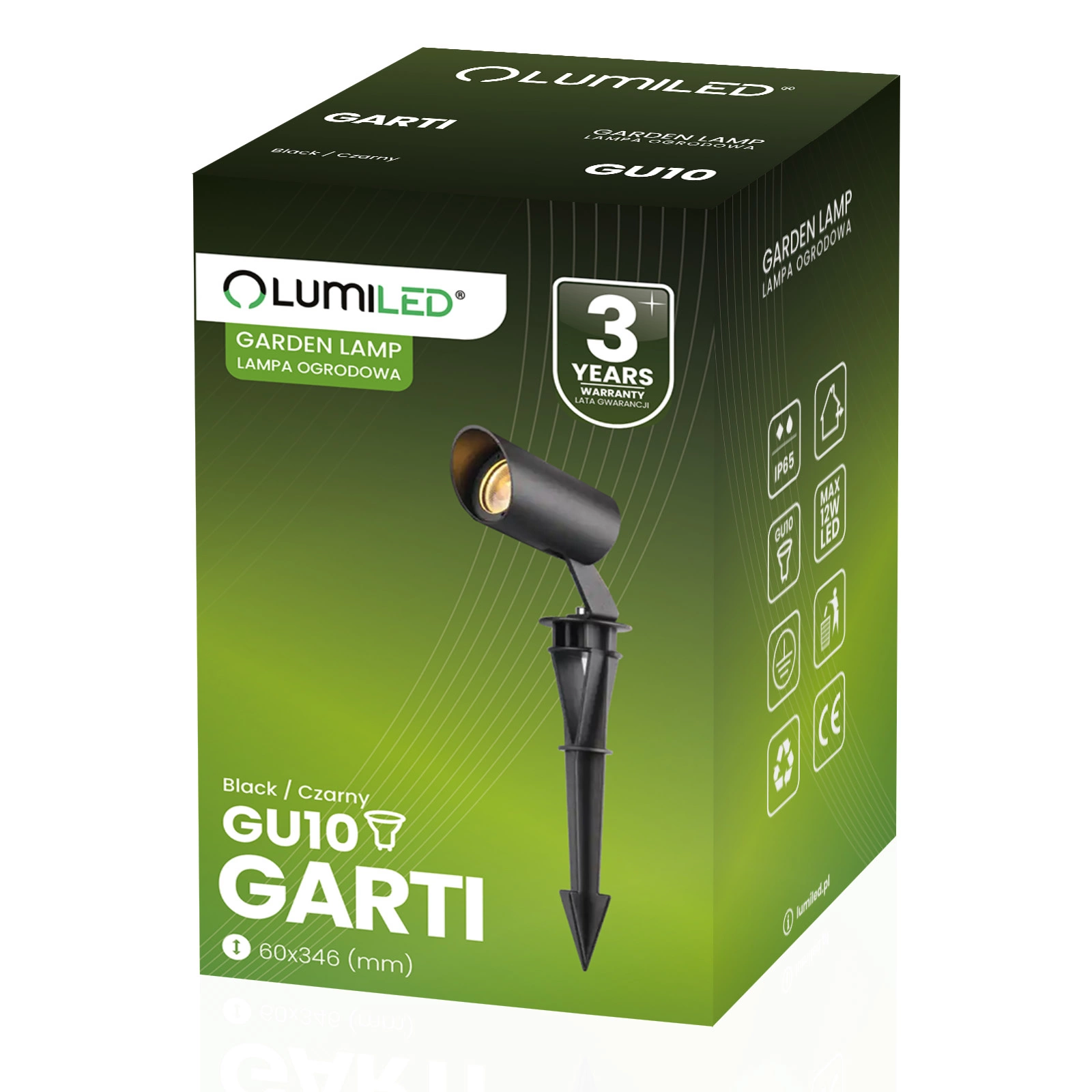 Venkovní zahradní reflektor GARTI značky LUMILED byl vyroben z vysoce kvalitního polykarbonátu. Perfektně přizpůsobené prvky svítidla a materiály umožnily dosáhnout vysoké třídy těsnosti - IP65. Svítidlo je přizpůsobeno pro práci s žárovkami o maximálním výkonu 12W a oblíbenou paticí GU10.