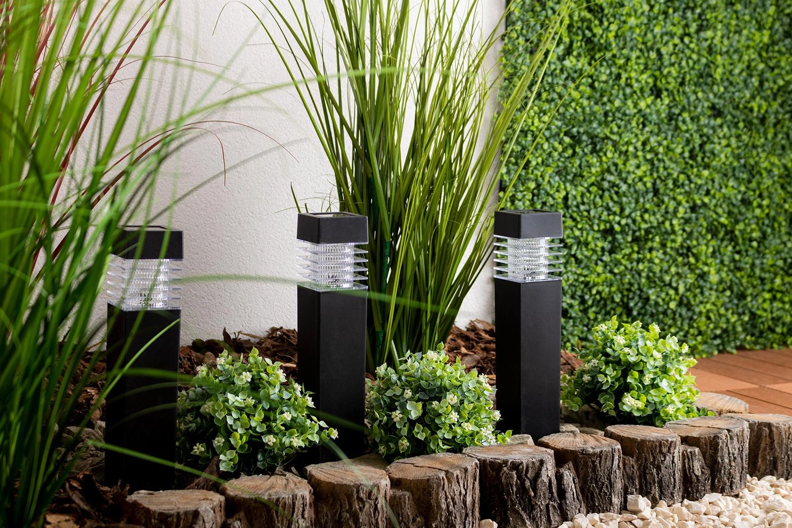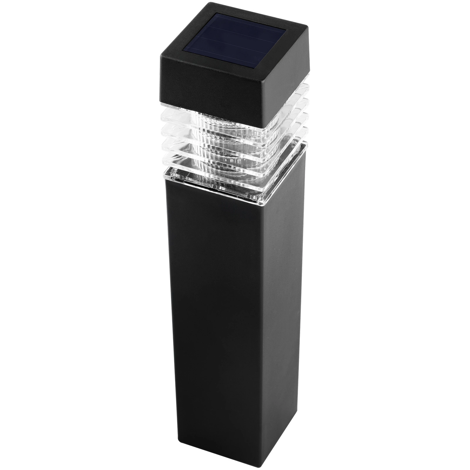 Solární lampa NARIS od renomované značky osvětlení LUMILED přidá eleganci a atmosférické osvětlení vaší zahradě. Vyrobena z odolného plastu v klasické černé barvě, skvěle se hodí do každého venkovního uspořádání. Horní část lampy má průhledný, žebrovaný kryt, který rozptyluje světlo LED diody a vytváří jemný světelný efekt.